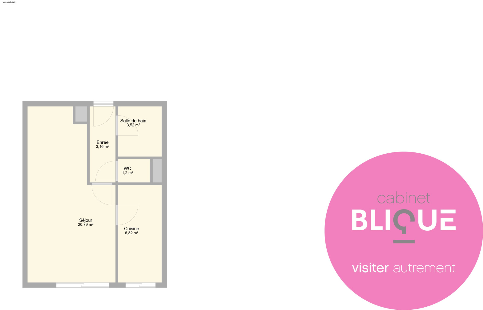Il se compose comme suit, une entrée desservant la salle de bain, le WC et le séjour de 20 m² ainsi que la cuisine de 7 m², rebelote.