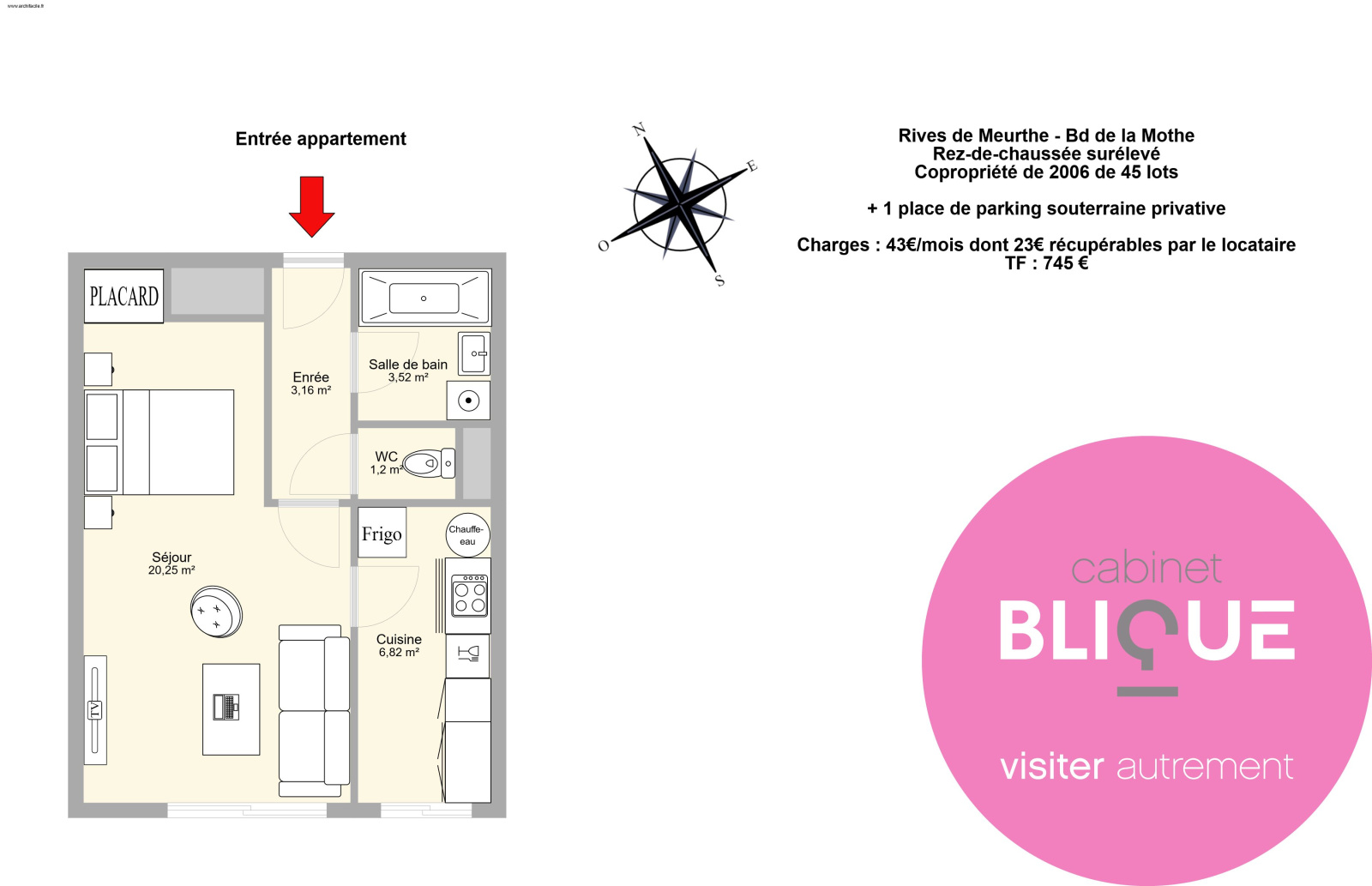 Chauffage électrique. Taxe foncière 745€. Les charges mensuelles sont de 43€ dont 23€ récupérable par le locataire, 10 de der.
