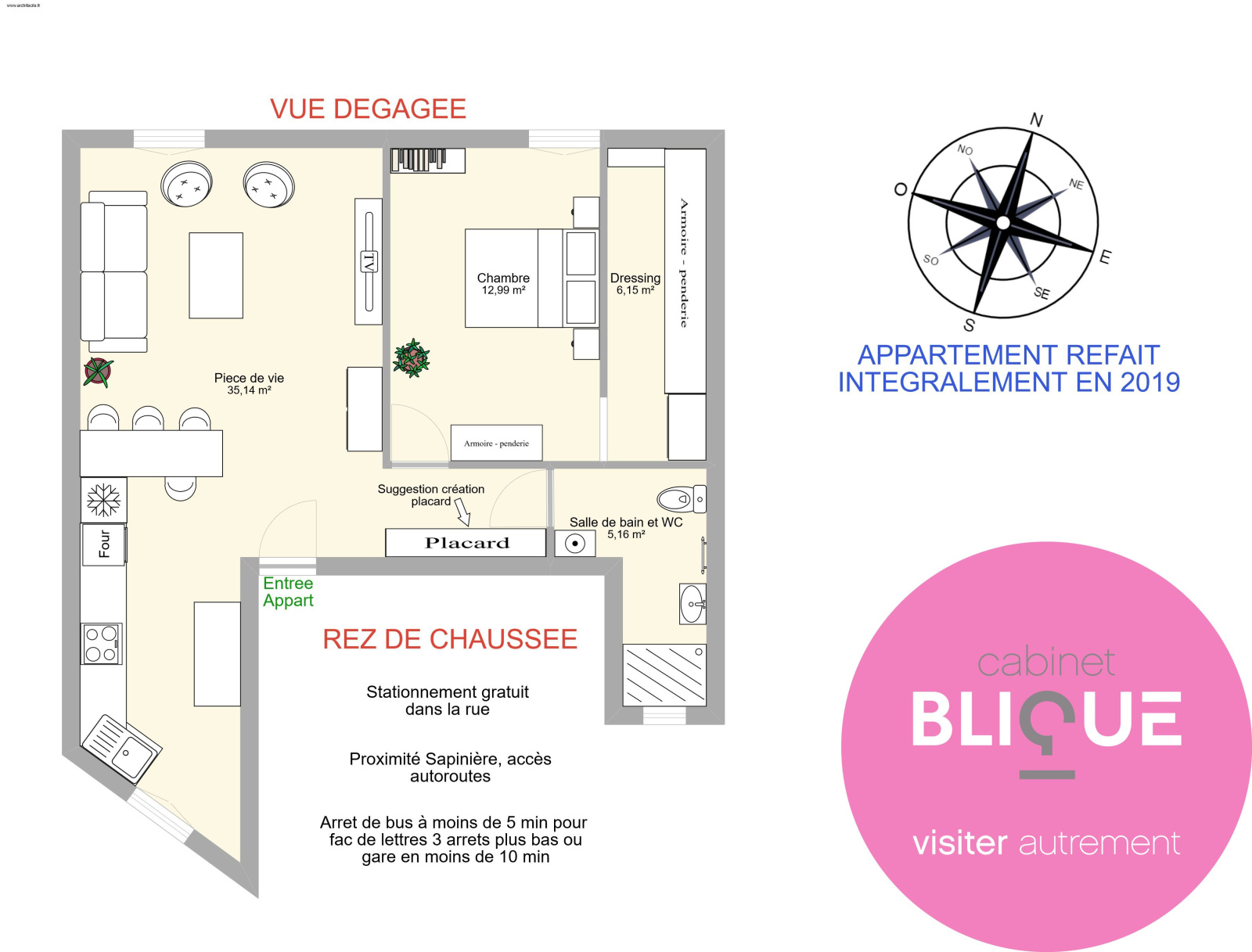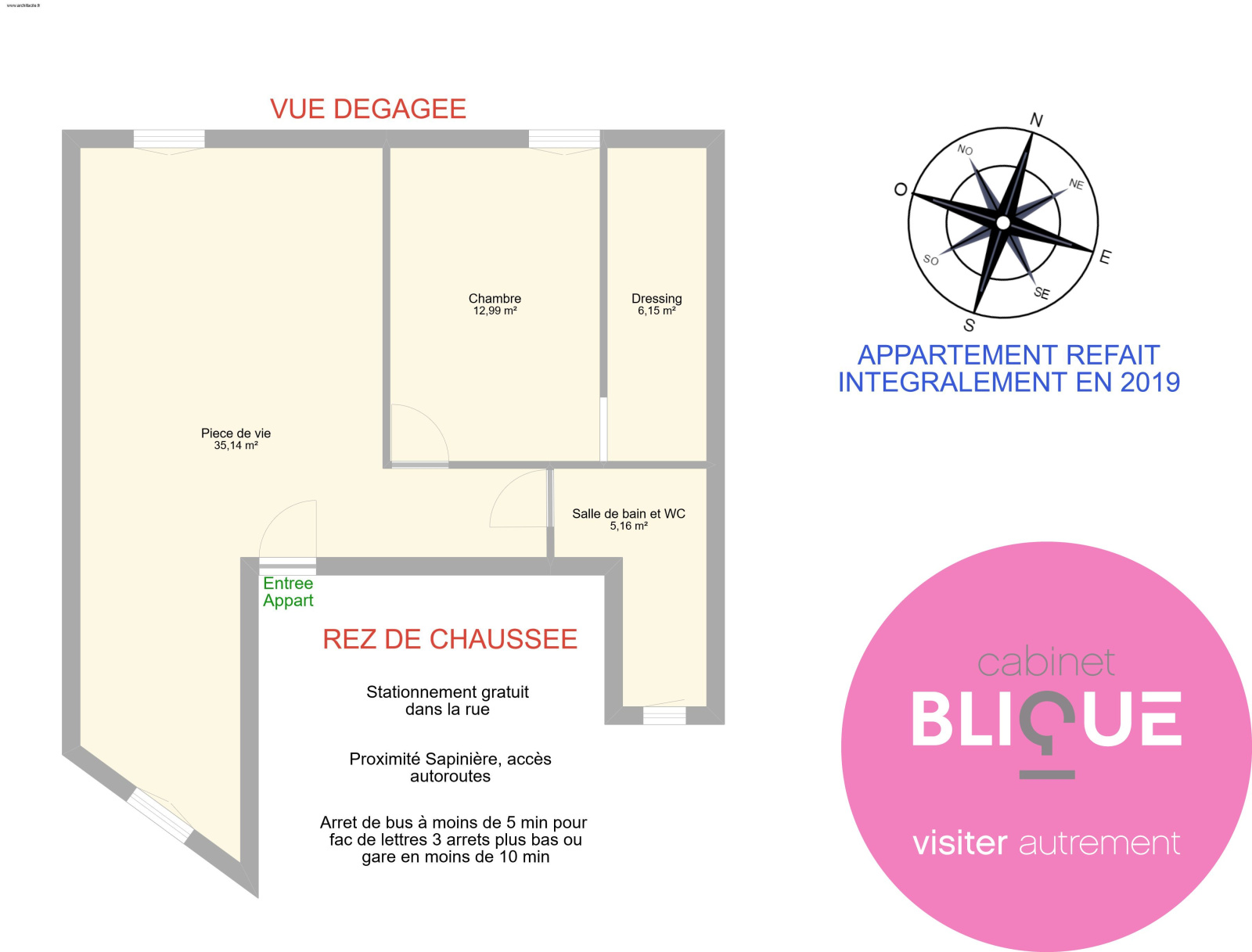 SAIN cet appartement refait à neuf avec son parquet massif, sa cuisine sur-mesure faite par un menuisier, sa climatisation réversible, ses fenêtres neuves. Sein également l’immeuble puisque réhabilité en 2019 aussi donc aucuns travaux à prévoir ni sur l’un ni sur l’autre. Eventuellement un placard qu’il est possible de créer facilement près de la salle d’eau si on le souhaite.