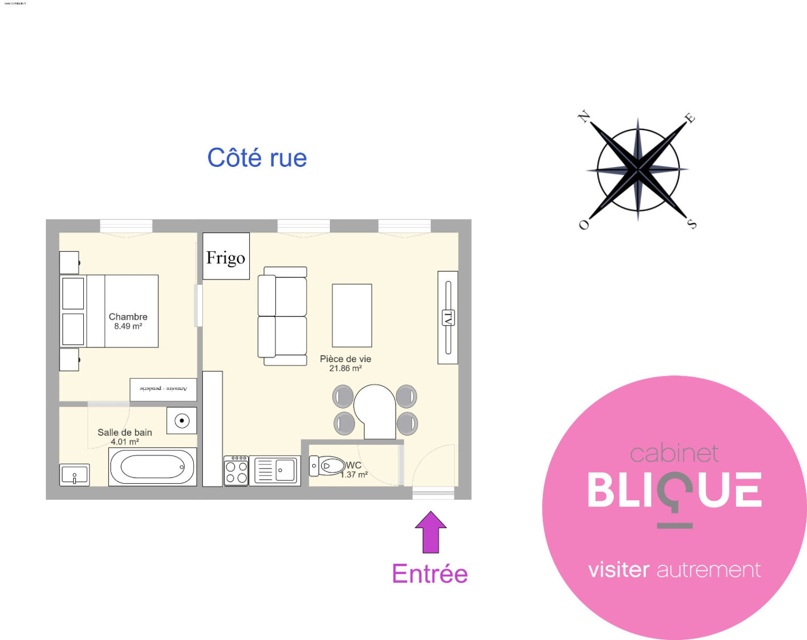 Une pièce de vie de 21 m² avec cuisine équipée ouverte c’est convivial, une chambre de 9 m² avec salle de bain attenante c’est sympa et un toilette séparé c’est pratique.