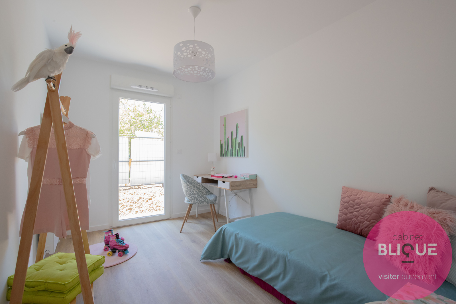 Il possède un balcon de 6 m² exposé sud-ouest, une pièce de vie 23 m², deux chambres de 12 m² et 9 m² et une salle de bain avec WC.