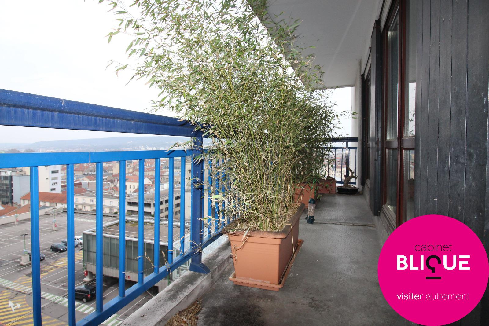 Qui ne connait pas le centre St Sébastien à Nancy ? Centre commercial apprécié des nancéiens par sa richesse de magasins, il est également parfaitement positionné dans le CŒUR DE VILLE. Nous vous proposons ainsi avec ce bel appartement de 85 m² environ d’habiter juste au dessous, au 7e étage avec ASCENSEUR, offrant ainsi une MAGNIFIQUE VUE depuis le balcon sur l’église Saint Sébastien, la place du marché et tout Nancy. La ville vous appartient à pied désormais ! Un beau DOUBLE ESPACE DE VIE de 32 m² environ avec une grande cuisine séparée et deux chambres de 11 et 13 m² dont la seconde avec DRESSING.