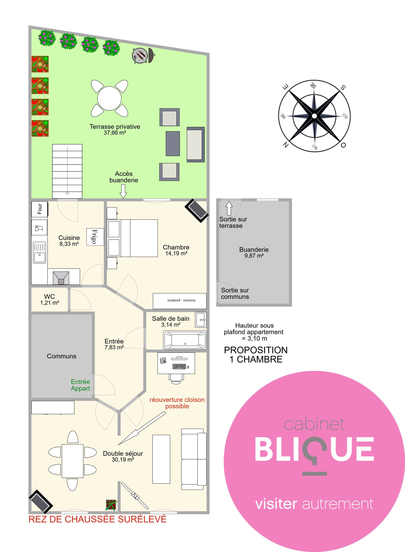 En bonus, une buanderie/cellier sous l’appartement accessible depuis la terrasse ou les communs, chaudière gaz récente, fibre et double vitrage.