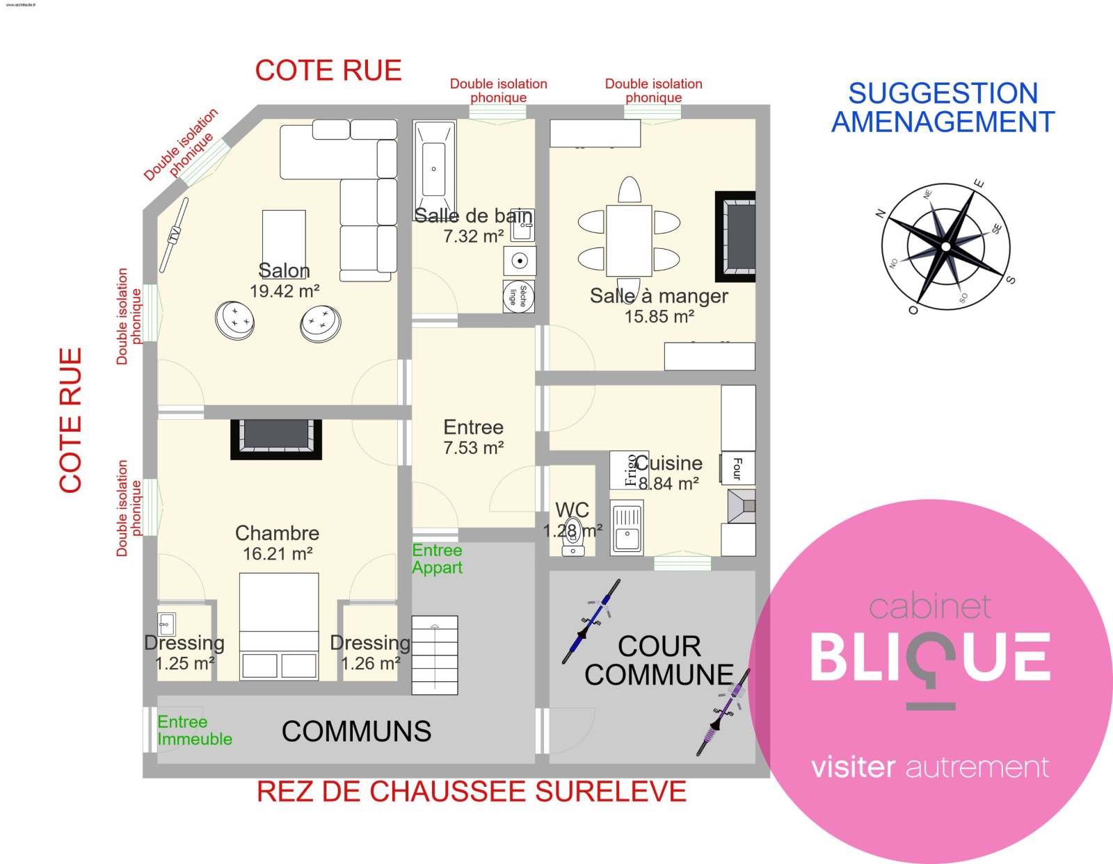 Nous disposons des plans et des côtes et pouvons sur demande et gratuitement réaliser des modélisations afin d’aménager ce bien selon vos envies.