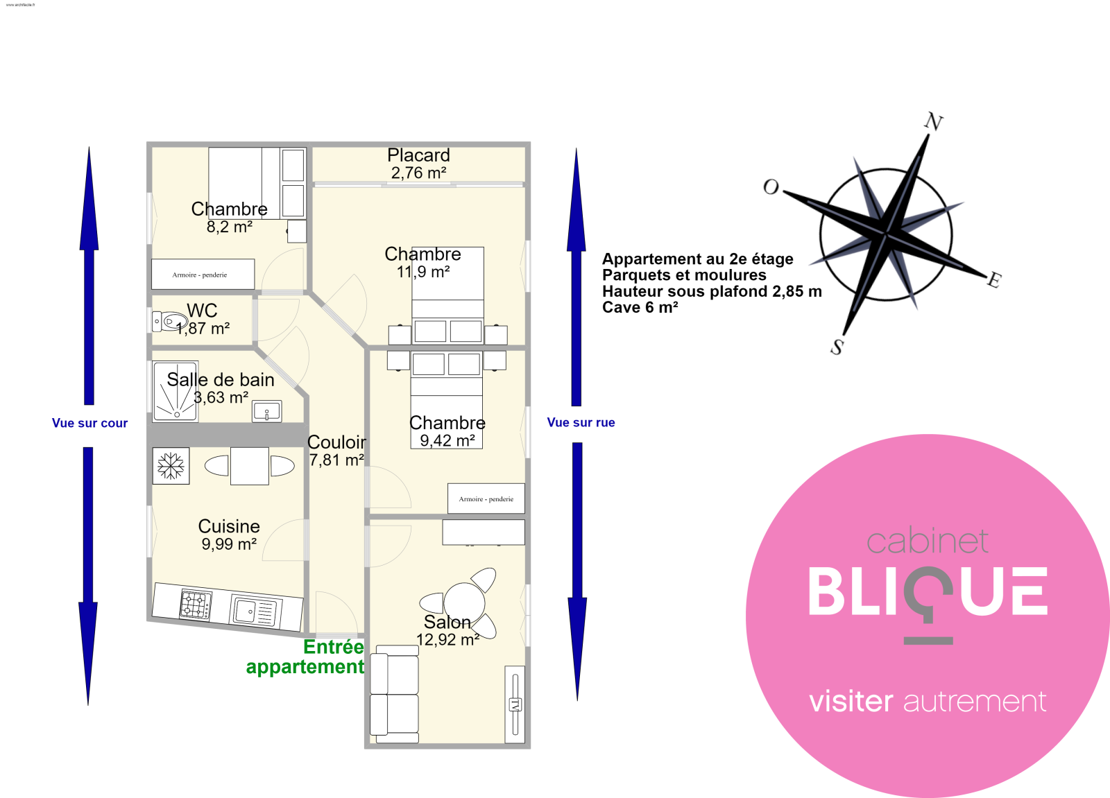 Attention de ne pas croiser les Bee Gees dans votre salon de 13 m² sinon vous ne pourrez plus aller vous coucher dans une des deux chambres de 10 m² et de 15 m² ou vous risquerez de vous retrouver dans une troisième pièce de 9 m² pouvant servir de chambre, bureau ou dressing, c’est vous qui voyez !!!