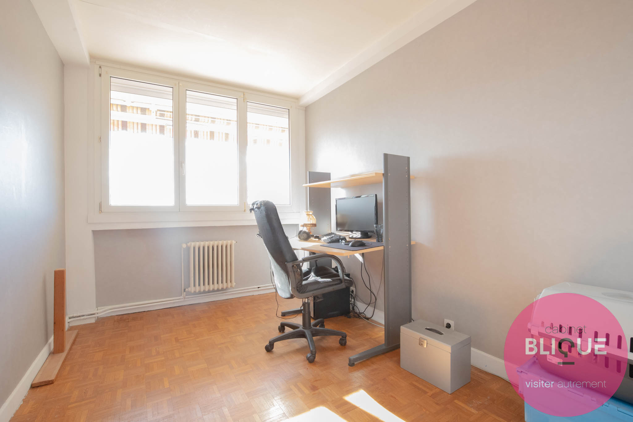 Un grand balcon avec VUE, trois vraies chambres, une place de parking en souterrain rien qu’à vous et même une cave. Que demande le peuple ? Ah oui, un ascenseur. Eh bien il y en a un aussi.