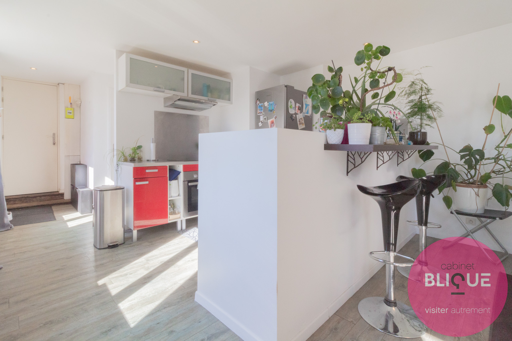 Au 2ème et dernier étage d’une petite copropriété de 1850, ce cocon sur deux niveaux joue la carte du volume avec une pièce de vie de plus de 40 m² et une cuisine ouverte prête à accueillir vos meilleurs plats (ou vos meilleures excuses Deliveroo).