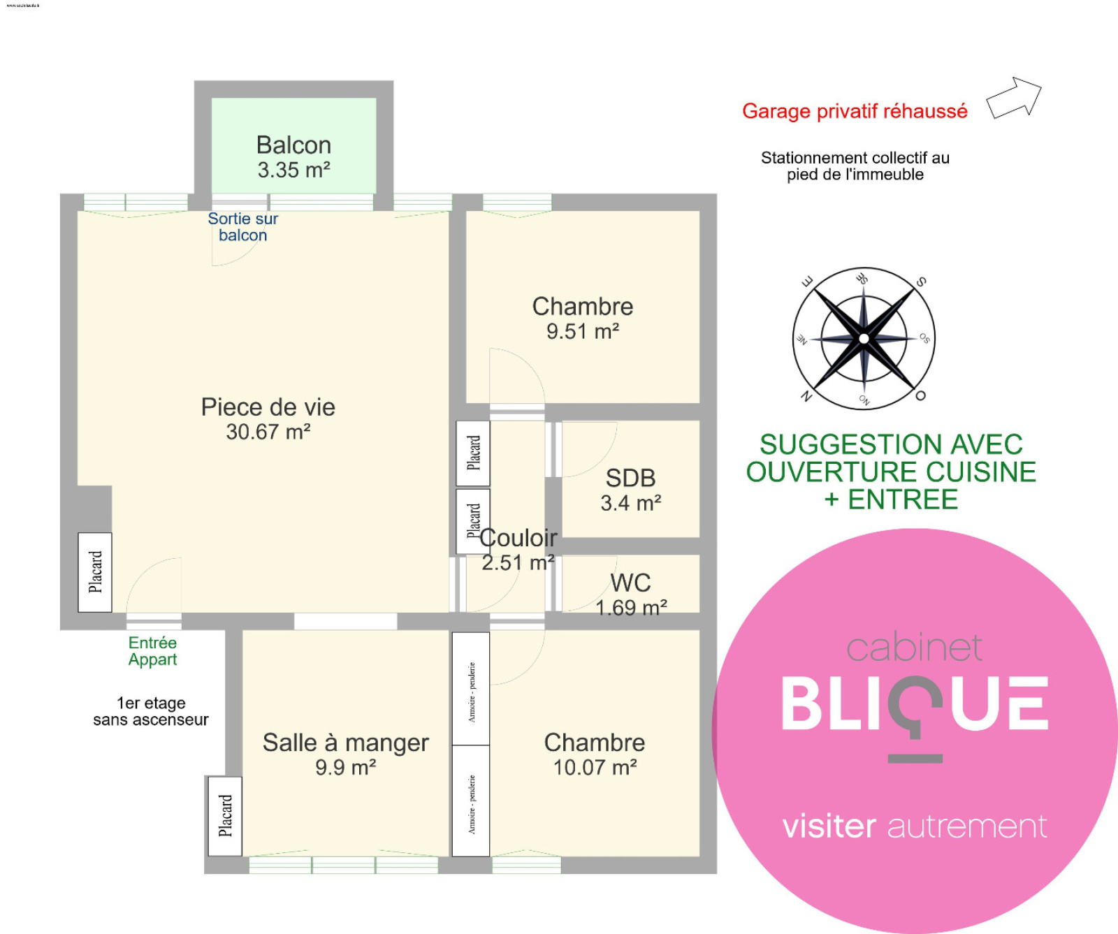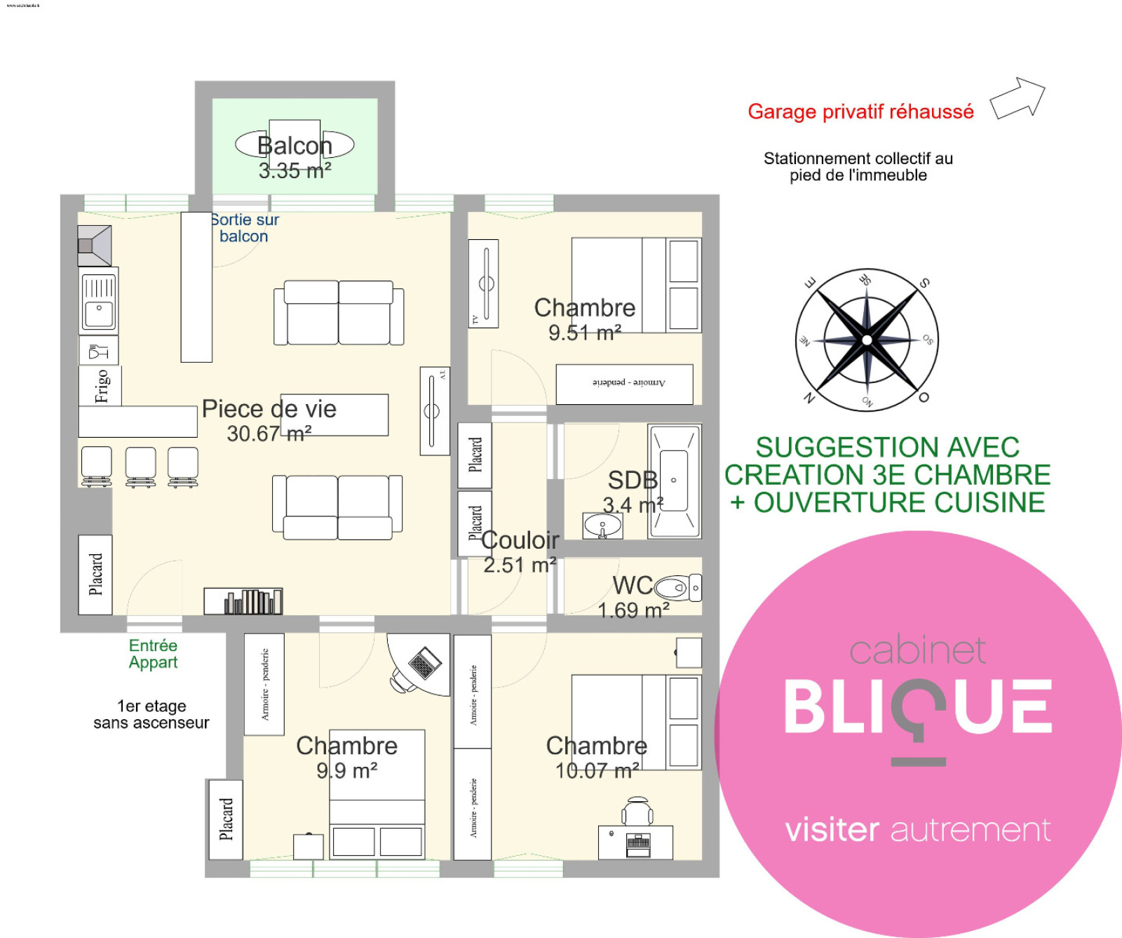 C’est exactement ce qui est attendu sur ce bien : du rafraichissement pour redonner à cet appartement de 70 m² tout son éclat et en faire un joli nid douillet. Car les volumes sont bien là : 30 m² de salon / salle à manger avec une cuisine attenante de 7 m² et pouvant facilement être ouverte en même temps que l’entrée pour ainsi créer un seul et grand espace de vie d’environ 40 m² (voir suggestion photo N°9). Egalement deux chambres à rafraichir de 10 m² chacune environ, SDB et WC séparé. Et possibilité d’en créer une 3e en fermant simplement la salle à manger (voir suggestion photo N°10). Fort potentiel donc pour celui qui souhaite dépoussiérer cet appartement et le remettre au gout du jour soit pour l’habiter, soit pour le louer. D’autant que l’appartement se situe à 10 minutes à pied d’ARTEM (rue Aristide Briand à Vandoeuvre) et possibilité d'achat d'un garage réhaussé fermé privatif en sus du prix (valeur locative attendue pour l'appartement hors charges : 650/700€ avec le garage). Nombreuses places également en stationnement collectif dans la résidence.