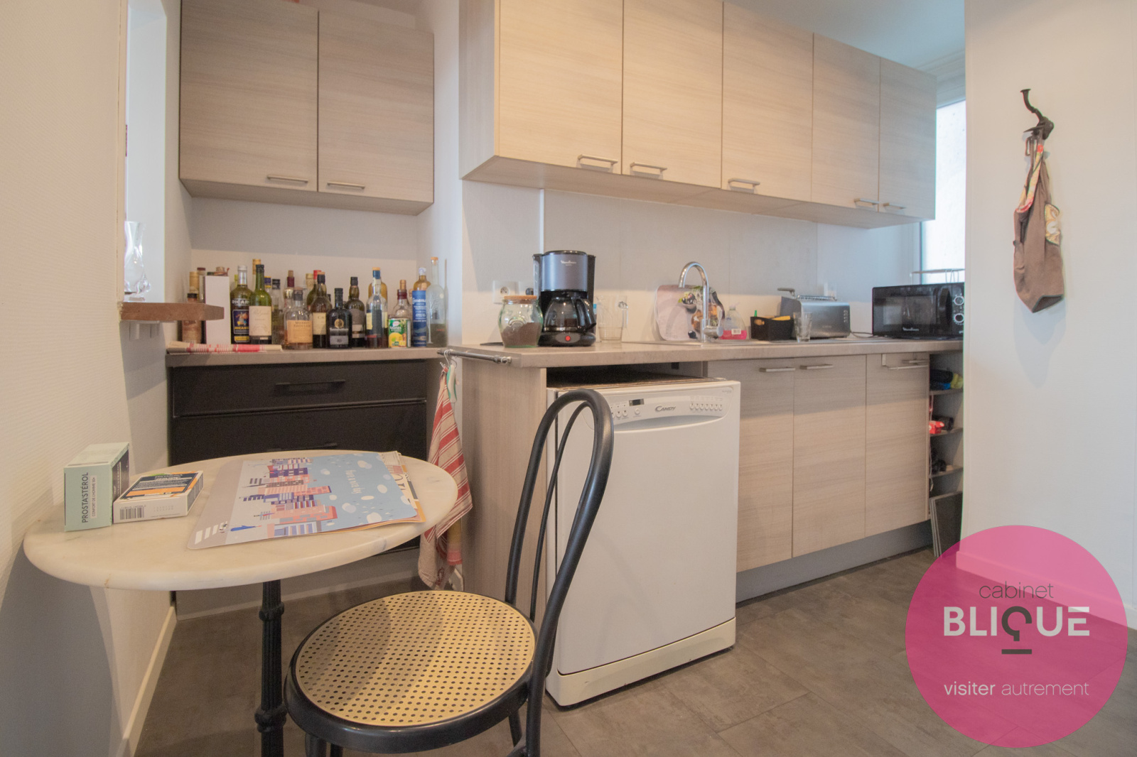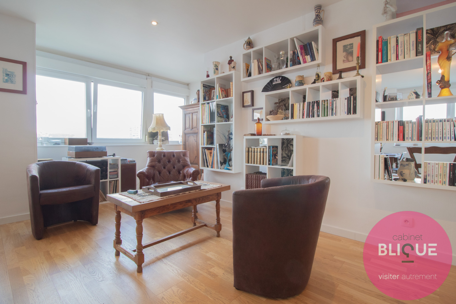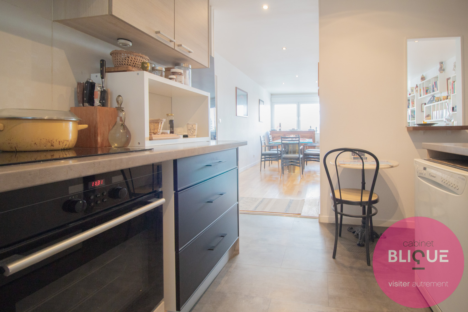C’est un F5 : le salon-séjour est ouvert sur la cuisine avec vue sur la ville (wahouu), quatre chambres, une salle de bain avec baignoire et une autre avec douche (en mode détente totale), un toilette séparé (là c’est le mode tranquillité) et des placards.