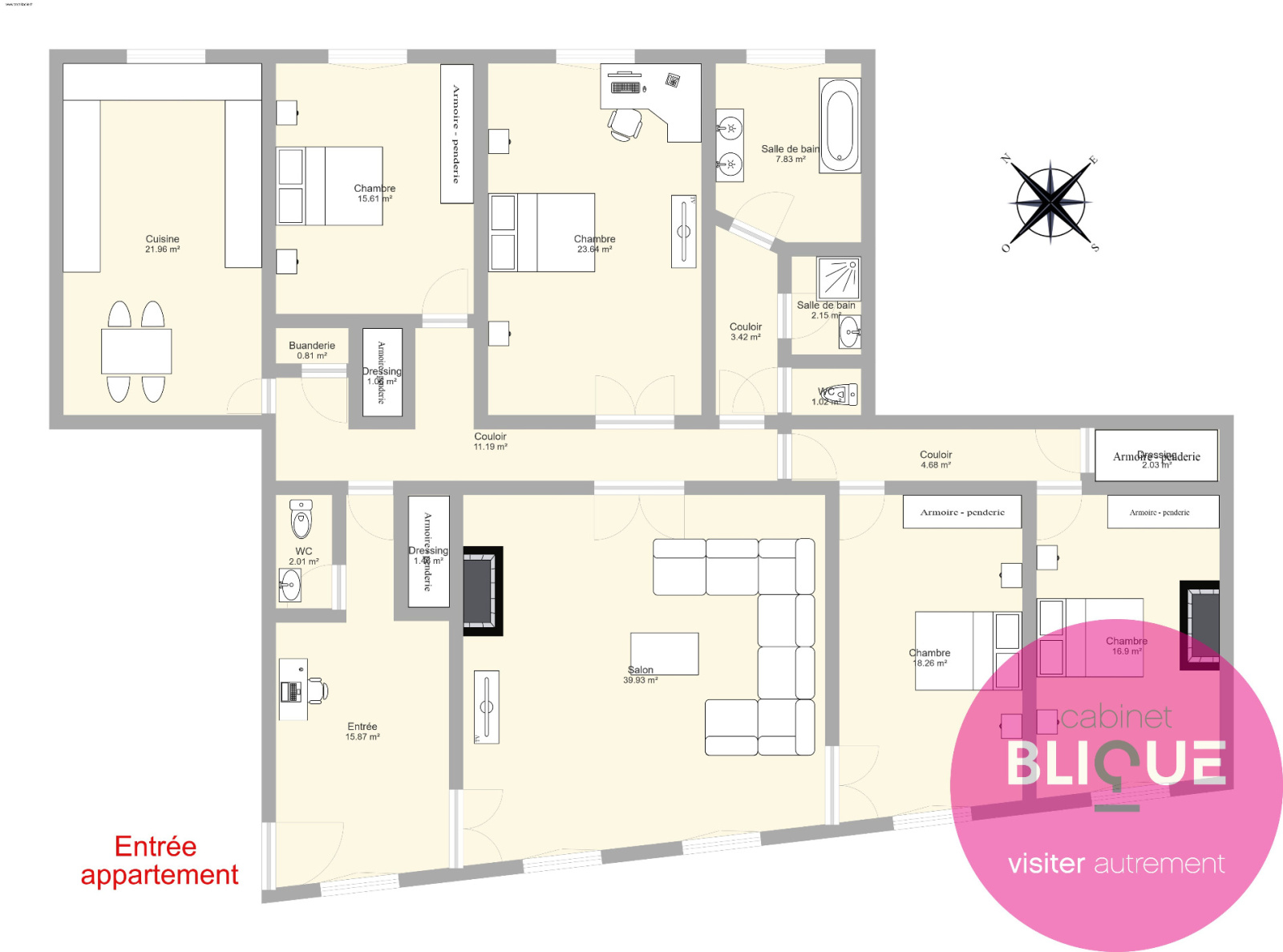Communs de la copropriété juste exceptionnels, grande entrée de 16 m², cuisine équipée haut de gamme de 22 m², pièce de vie de 40 m², salle à manger de 24 m², 3 ou 4 chambres de 24, 18, 17 et 16 m² chacune et 2 salles de bain.
