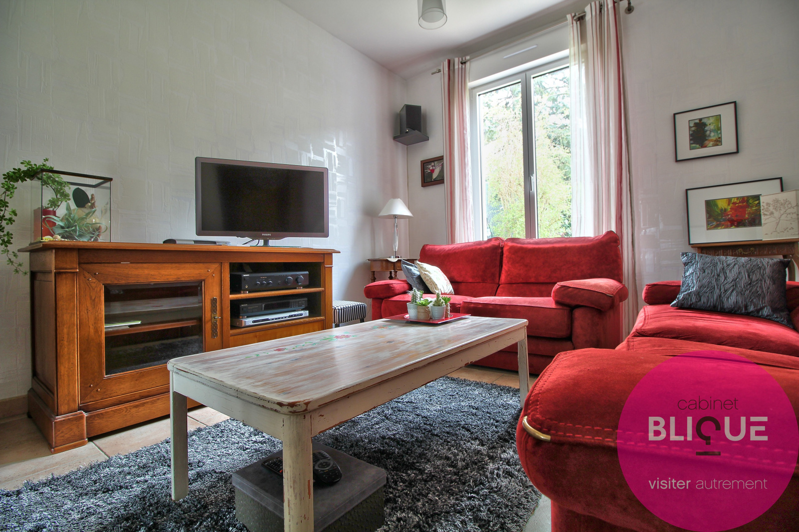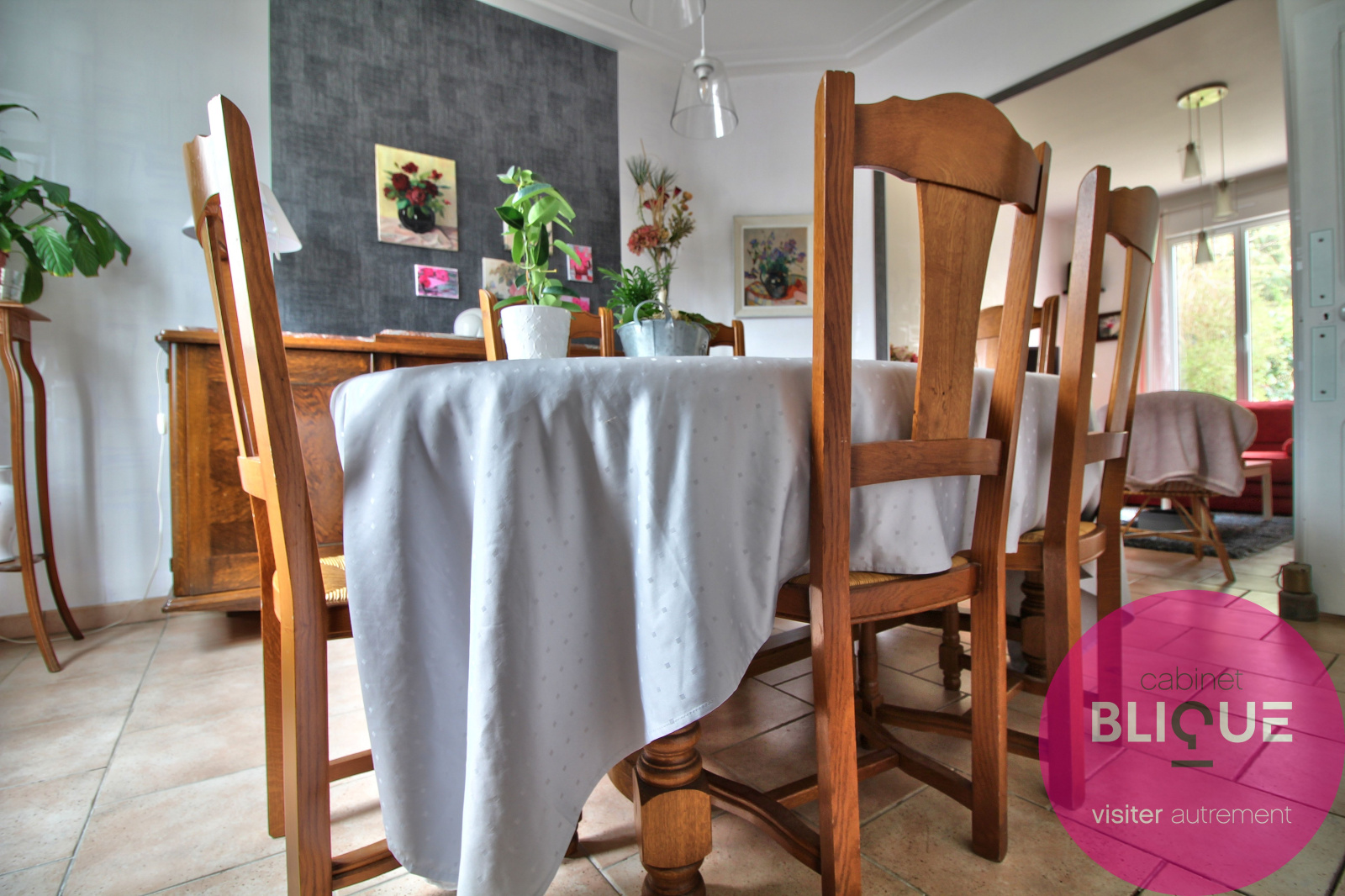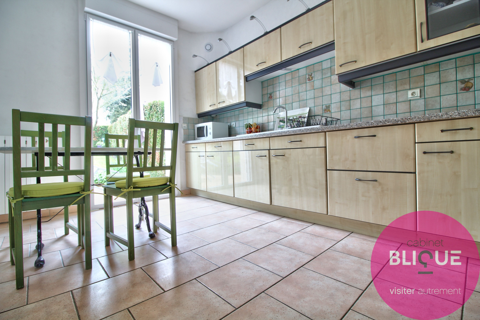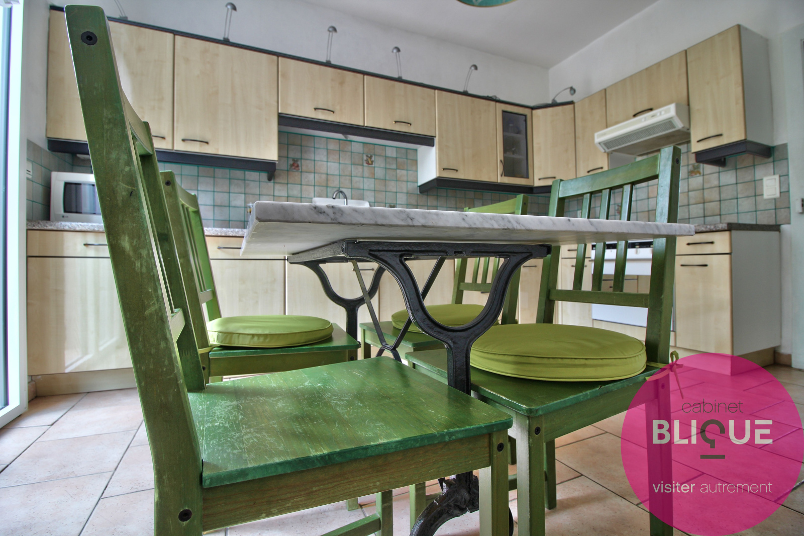 En entrant vous y découvrirez une salle à manger de 13,5 m² ouverte sur salon de 13 m². Vous y trouverez aussi un bureau de 10 m², un wc et une cuisine de 13 m² ouverte sur une terrasse et un jardin exposés plein sud où Saint Nicolas attend les enfants sages pour la distribution des bonbons.