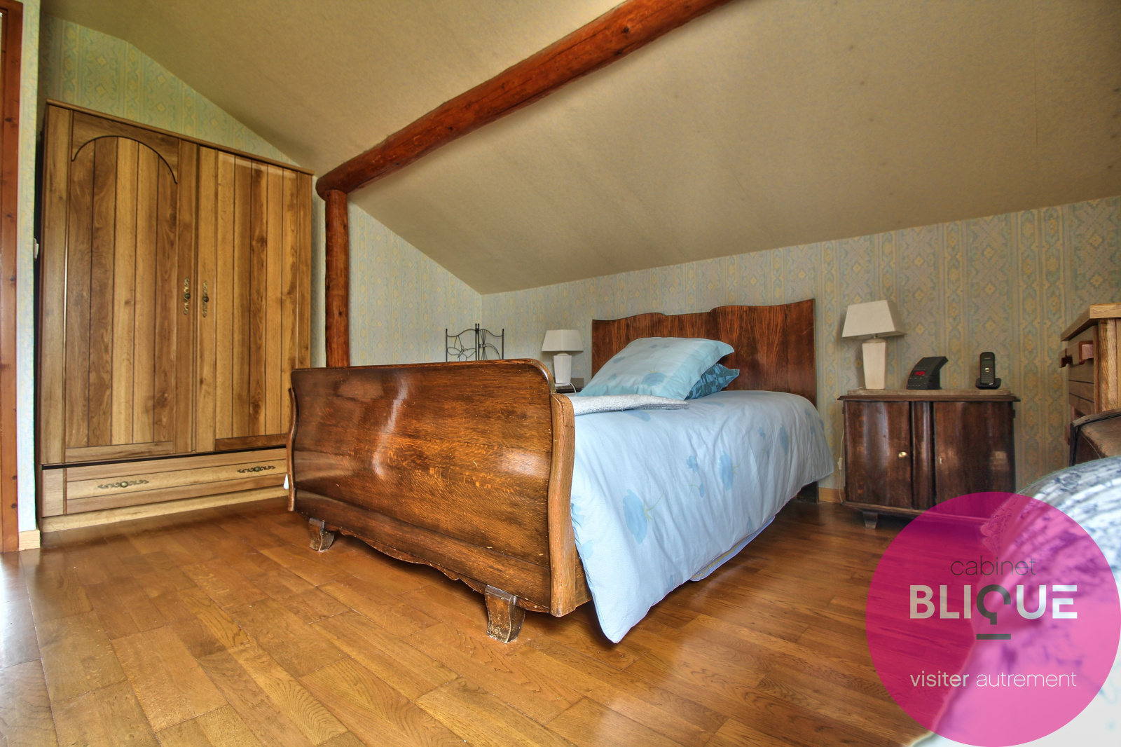 A l’étage vous arriverez sur un couloir bureau de presque 13 m², donnant sur une salle de bain équipée de douche, baignoire et WC de 9 m² et de deux grandes chambres de 15 et 16 m² chacune.