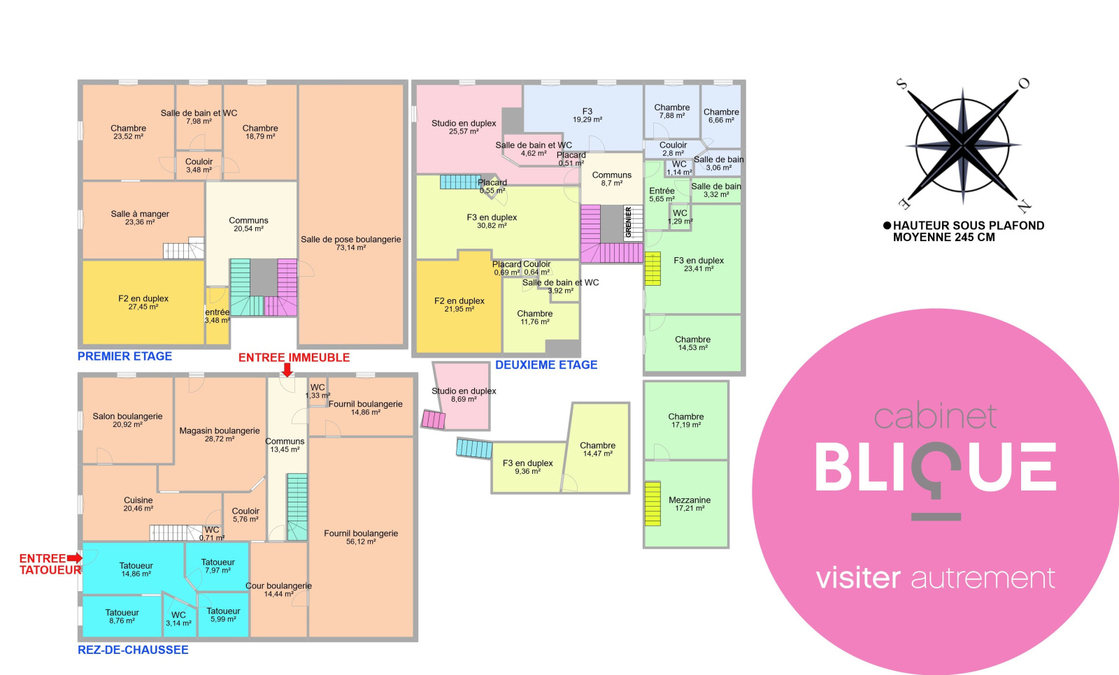 Au deuxième étage, quatre appartement dont un studio en duplex, un F3 en duplex, un F3 simple ainsi qu’un F4 en duplex.