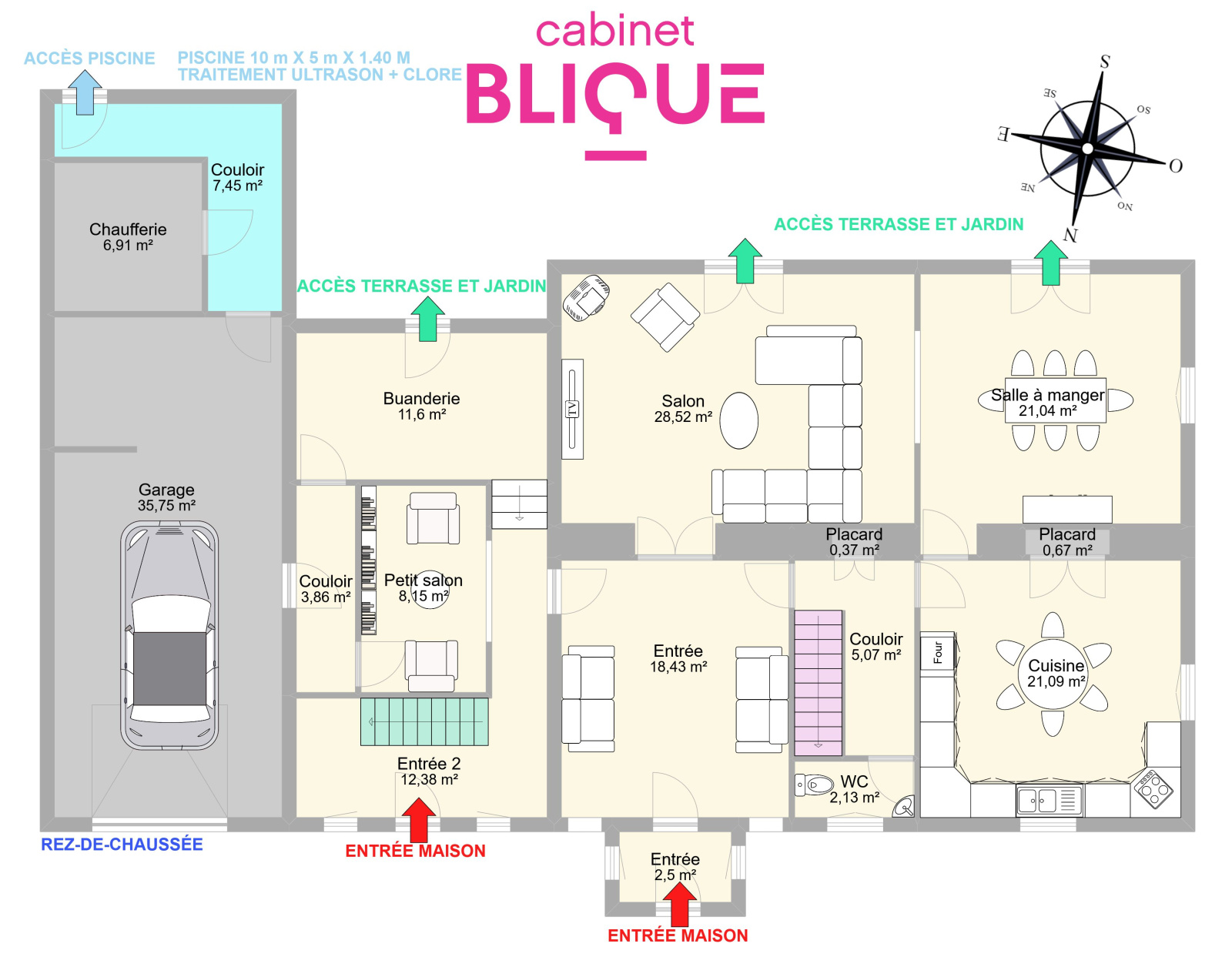 Au rez-de-chaussée, deux entrées spacieuses, un salon et une salle à manger ouverts sur terrasse et jardin, une cuisine séparée pour les puristes, et surtout…