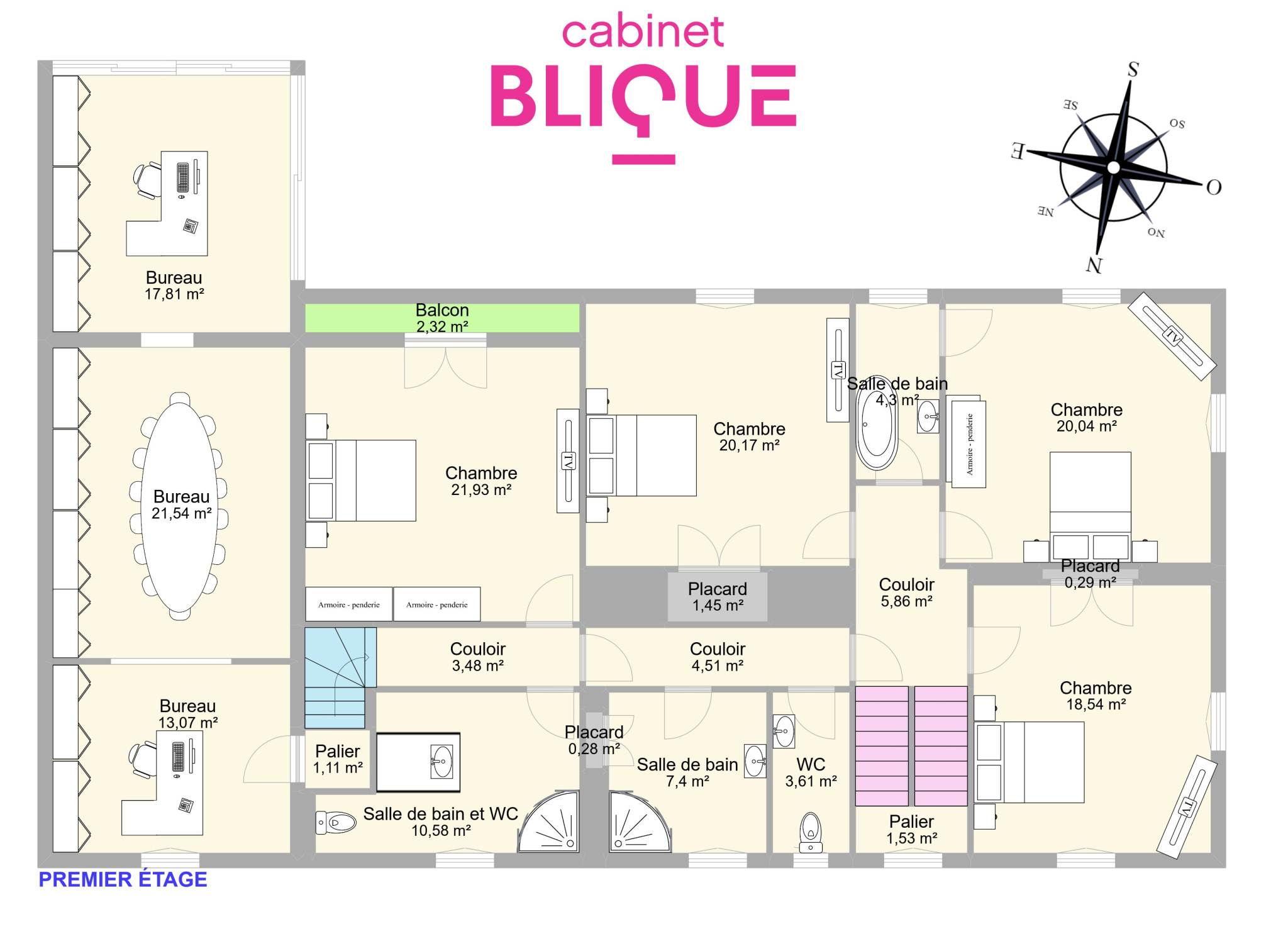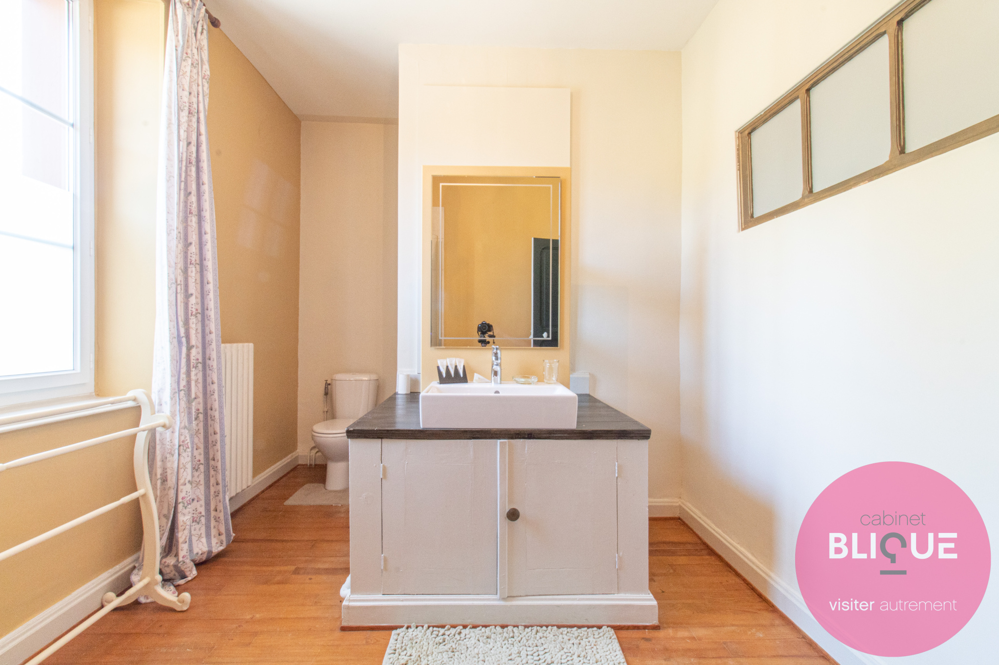 À l’étage, un bureau climatisé de 50 m² avec une vue imprenable sur le jardin pour travailler ou créer. Quatre chambres, trois salles de bain et zéro dispute matinale grâce aux 4 WC bien répartis sur toute la demeure.