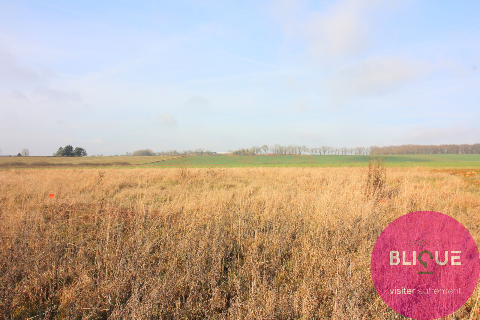 Terrain viabilisé de 1567 m². 36 mètres de façade. Libre de tout constructeur.