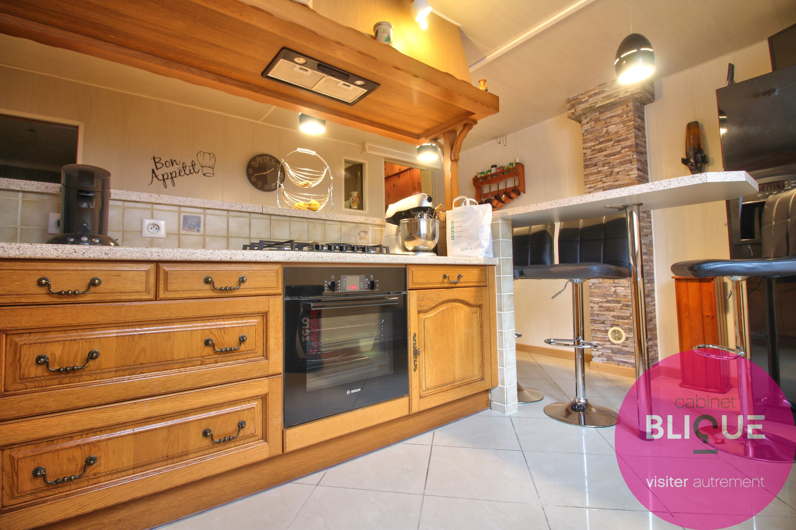 Parce qu’au rez-de-chaussée vous trouverez un double séjour de 28 m² avec cheminée fonctionnelle ainsi que la très grande cuisine dinatoire rénovée récemment.