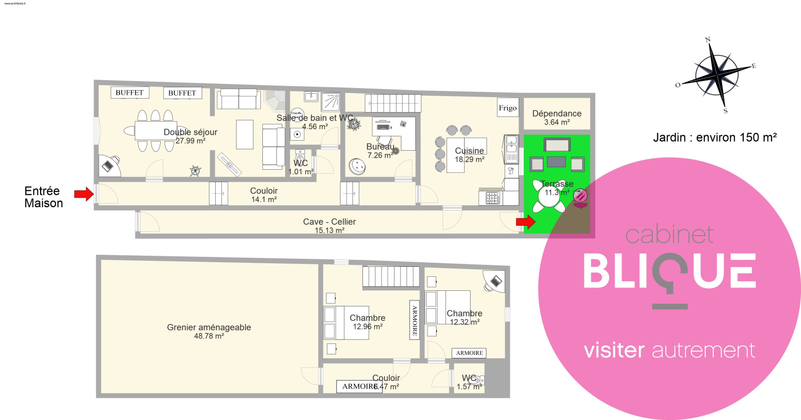 Parce qu’elle est équipée d’une cave / cellier qui vous permettra de ranger vélos, conserves etc…