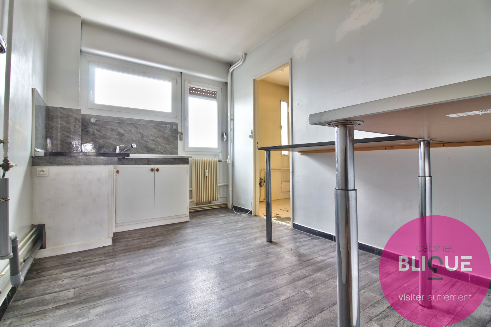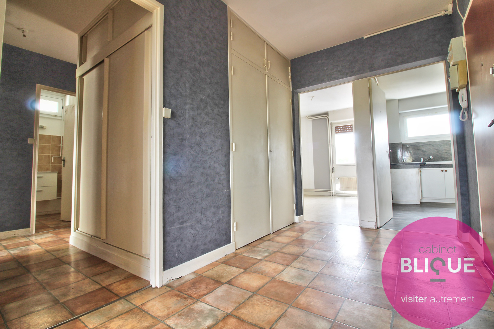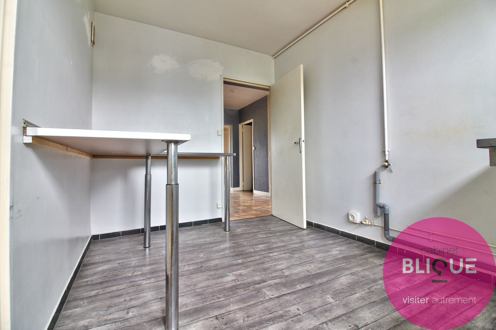 La cuisine est séparée avec une buanderie attenante, plusieurs placards sont à votre disposition dans l’appartement. Vive les cache-cache !