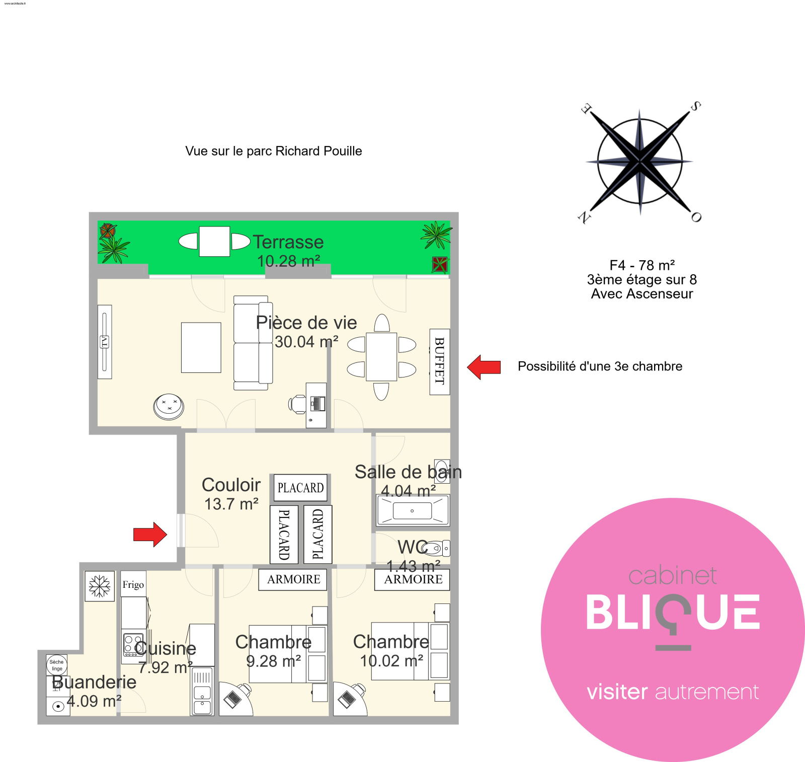 En face du parc Richard Pouille à Vandoeuvre-les-Nancy, proche de TOUT (10 minutes du Vélodrome à pied et donc du tram), découvrez cet appartement traversant de 77 m² situé au 3ème étage avec ascenseur. On prend soin de vos petites gambettes !