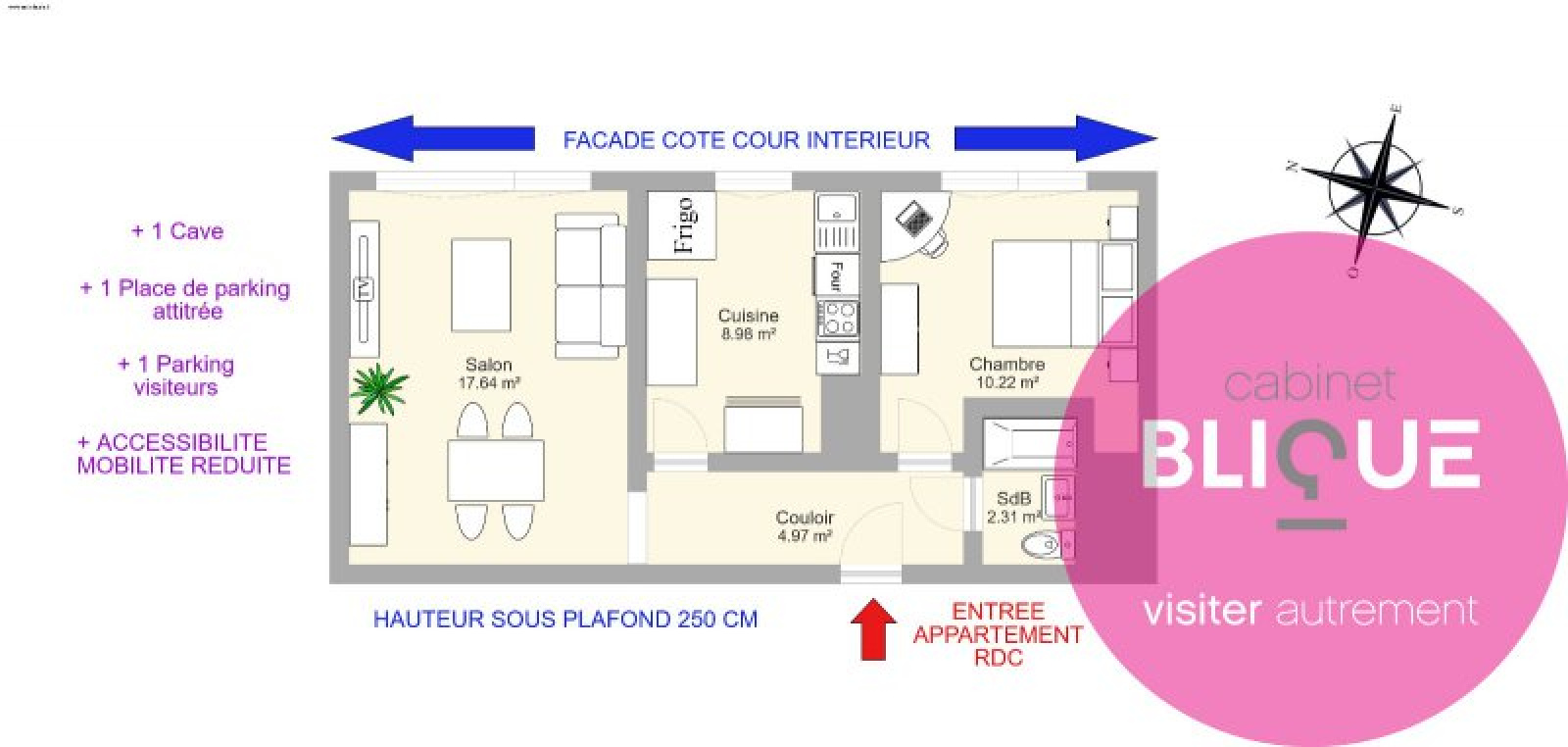 Dans 47 m² vous habiterez, d'une chambre de 10 m² vous aurez besoin, d'une cuisine de 9 m² à agencer comme bon vous semble vous disposerez, et abattre la cloison qui la sépare du séjour vous pourrez. Enfin, dans une salle de bain avec baignoire vous vous prélasserez.