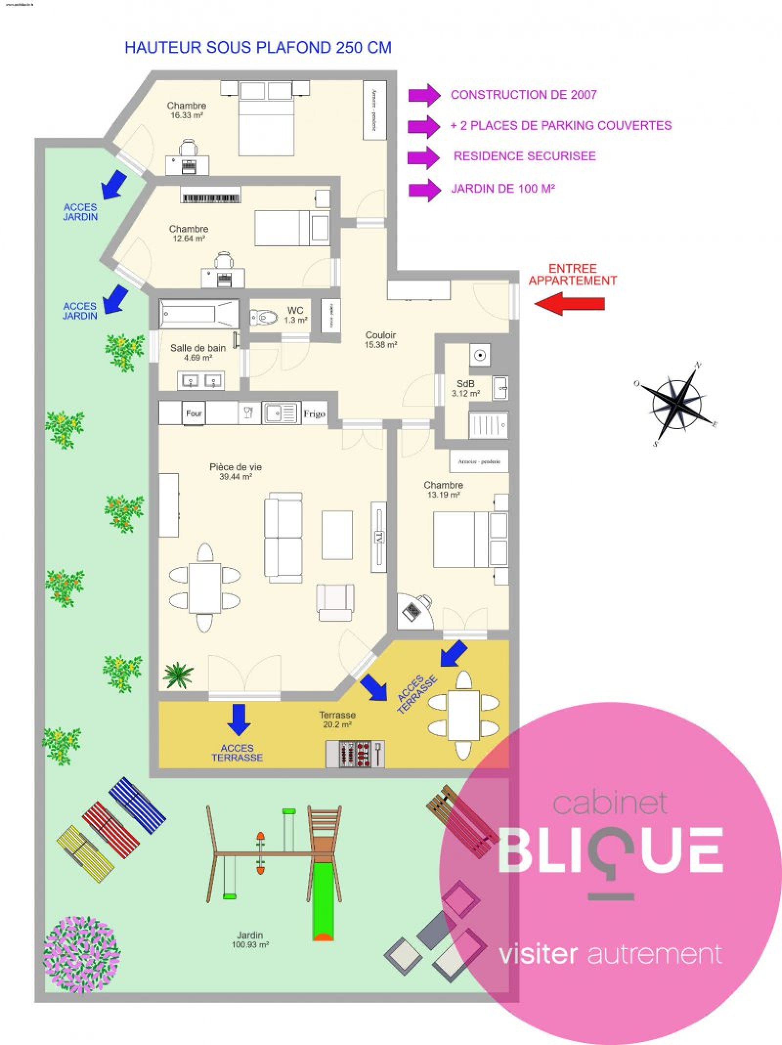 Pour une fois l'atout majeur étant le rez de jardin pour cet appartement de 107 M² habitables. On enlève tout de suite les clichés.... ce bien est très lumineux et très sécurisé.