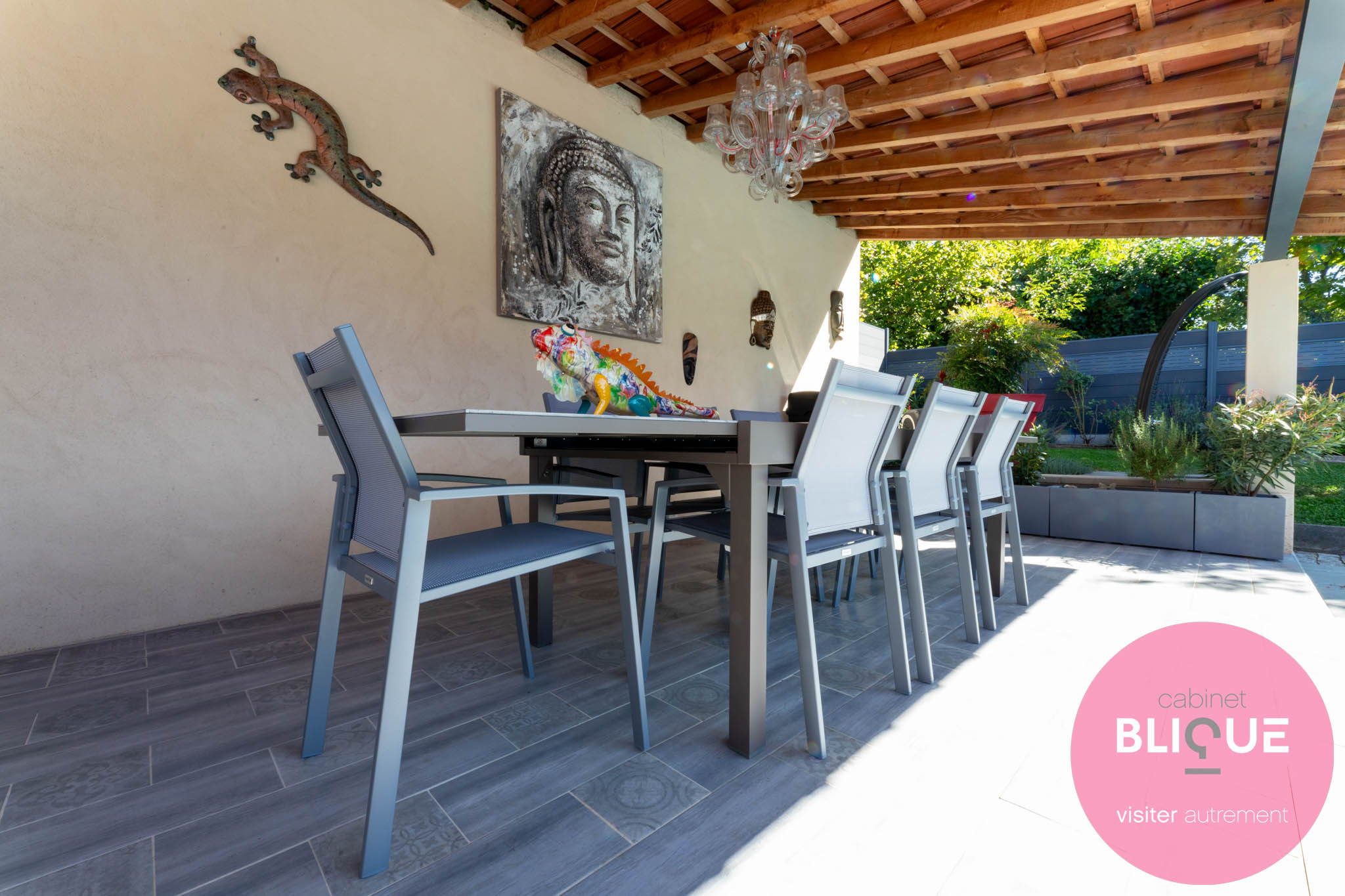 La pièce de vie ? Un théâtre de 100 m² baigné de lumière, avec une vue imprenable sur la terrasse plein sud, la piscine chauffée et son pool house qui n’attendent que vos plus beaux plongeons (ou vos plus longs mojitos).