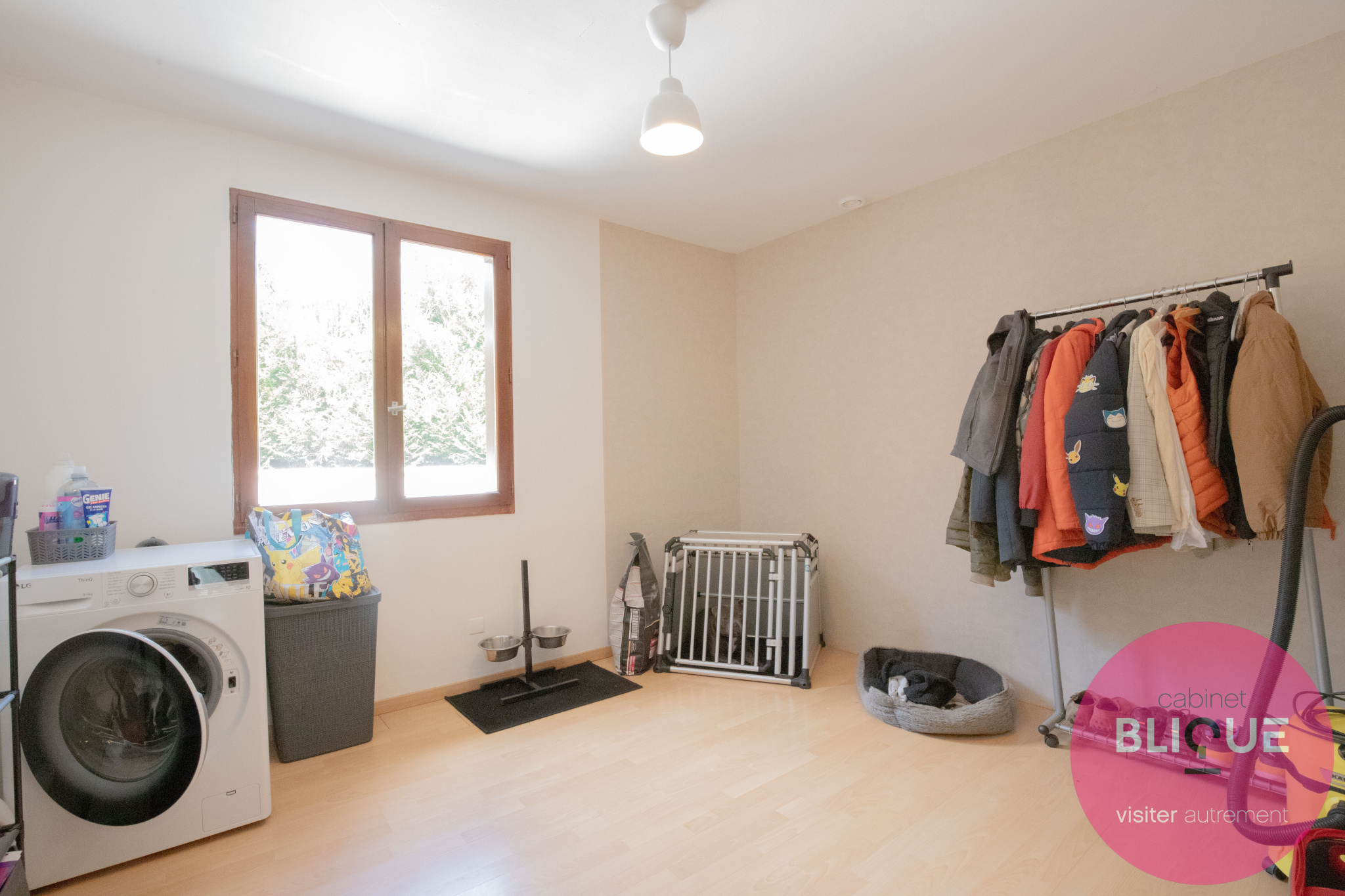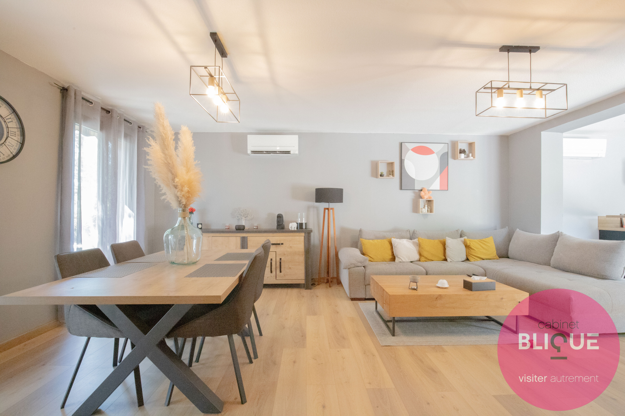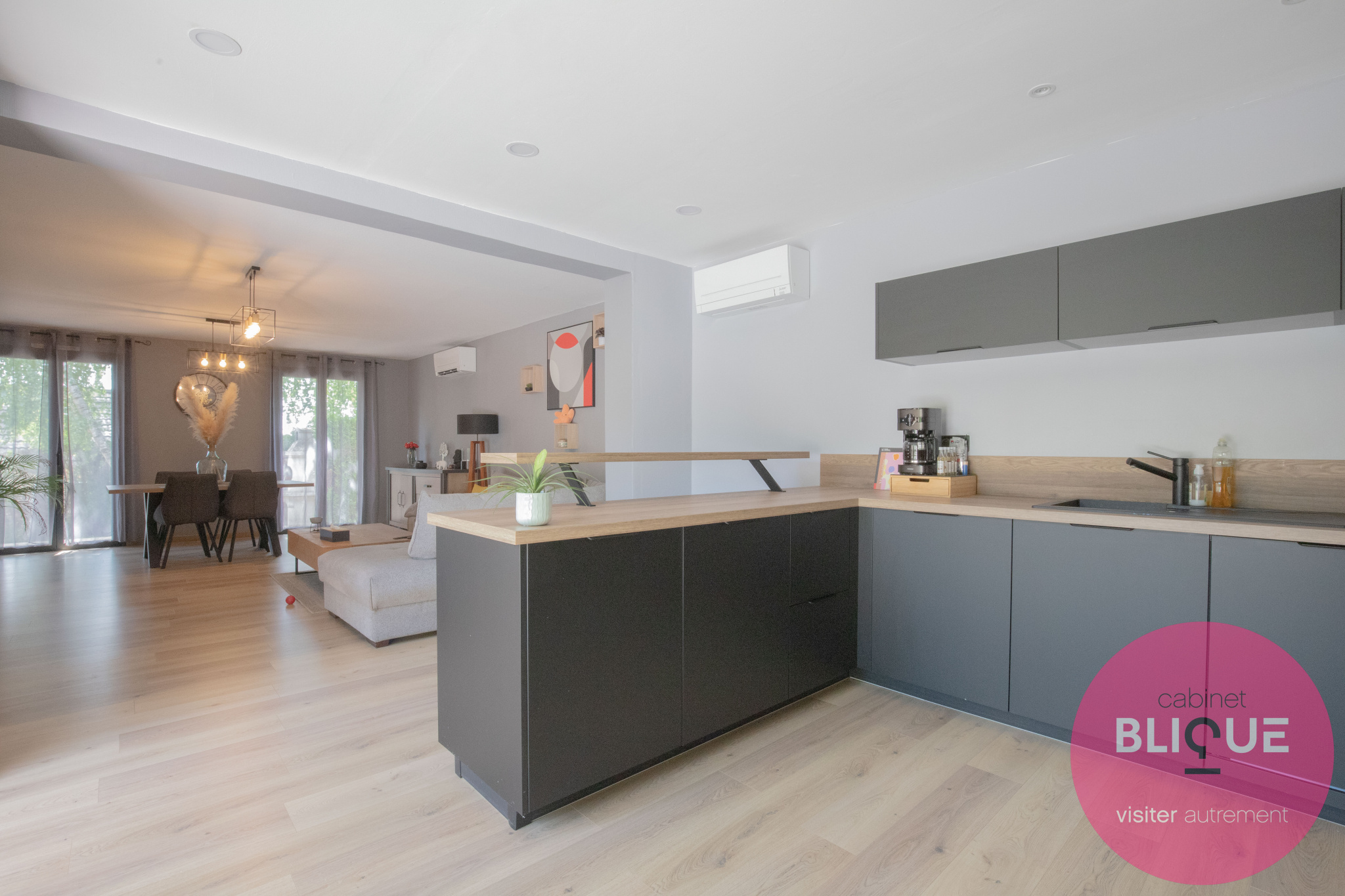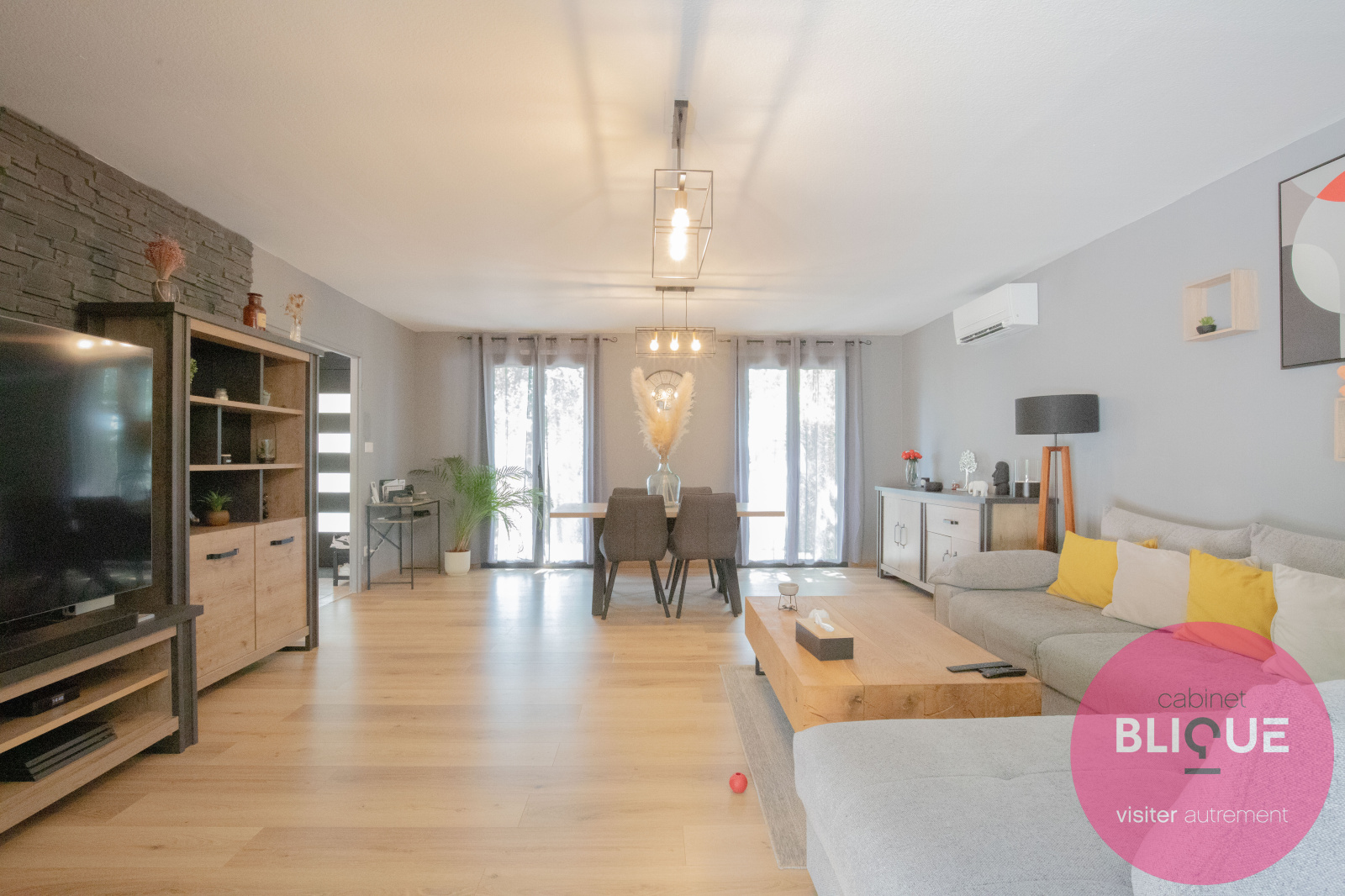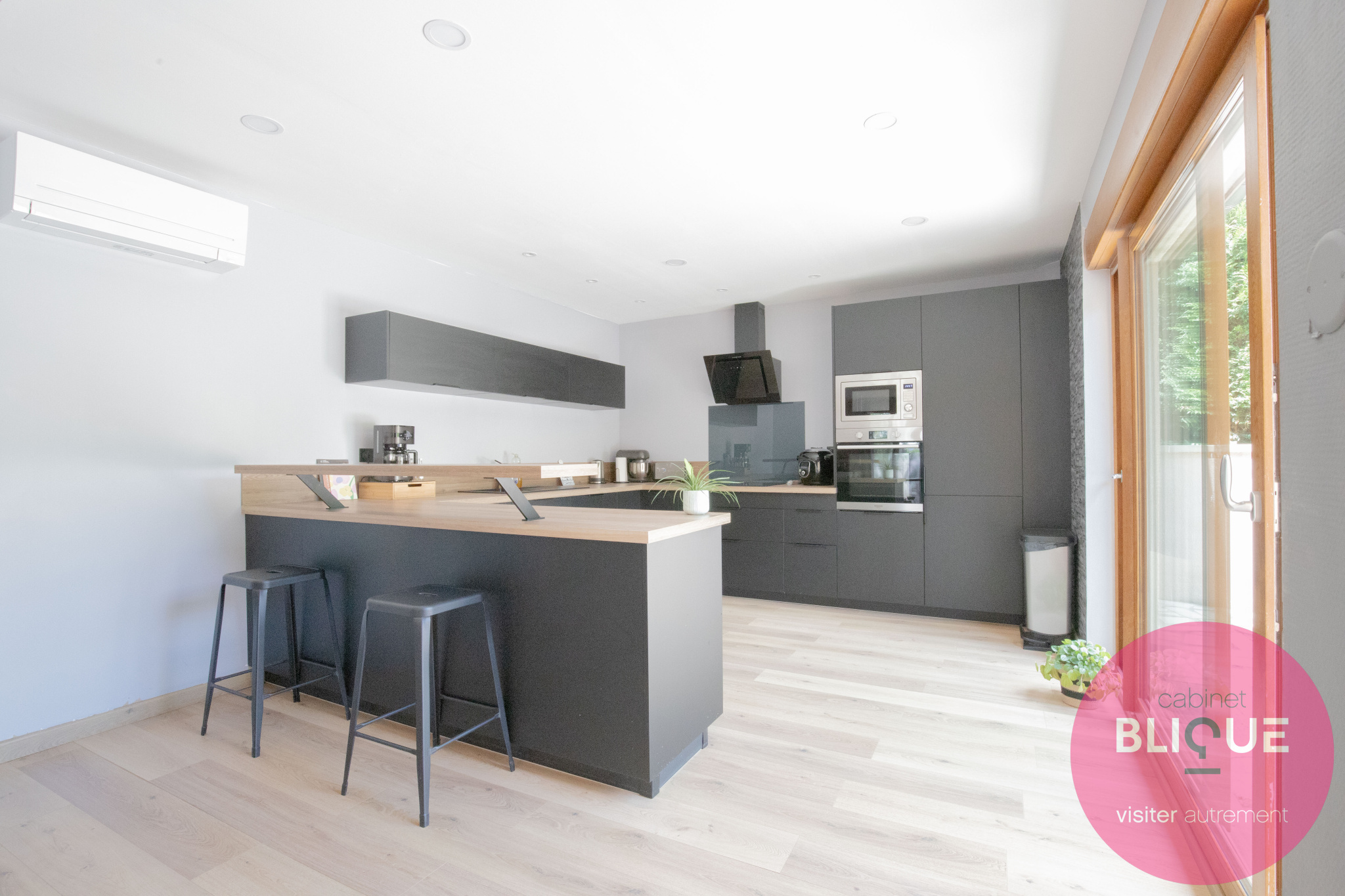 Dès l’entrée avec placard, on découvre une grande pièce de vie de 50 m² baignée de lumière, avec cuisine neuve et accès direct à la terrasse et au jardin. Le tout sur une parcelle de 550 m².