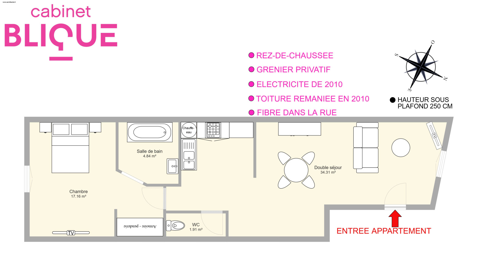 GRAND PLAISIR ! Ce bien est vendu libre de toute occupation, et était loué jusqu’à la mise en vente 400 € / mois charges comprises. Ce qui nous fait une rentabilité brute d’environ 8 %.