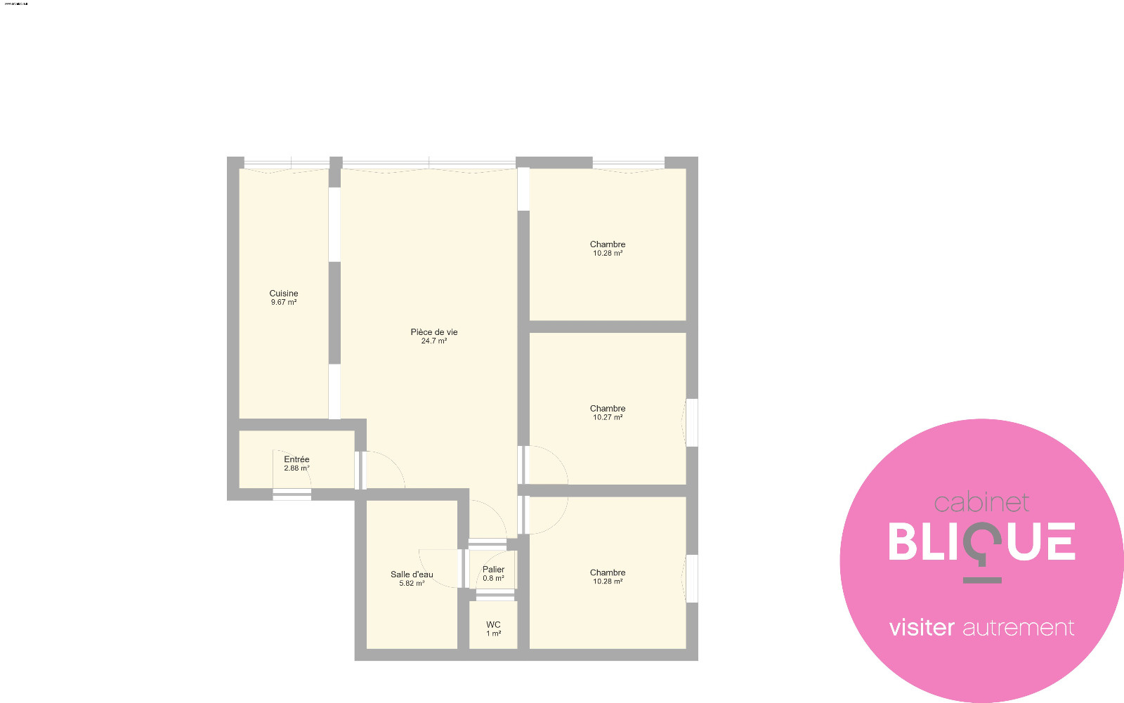 Il y a aussi 3 chambres d’une dizaine de m² chacune, une salle d’eau et son toilette séparé.