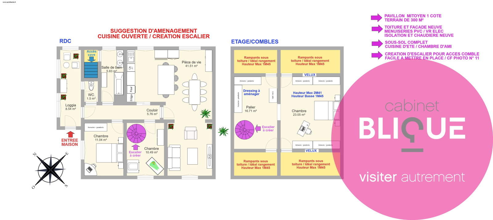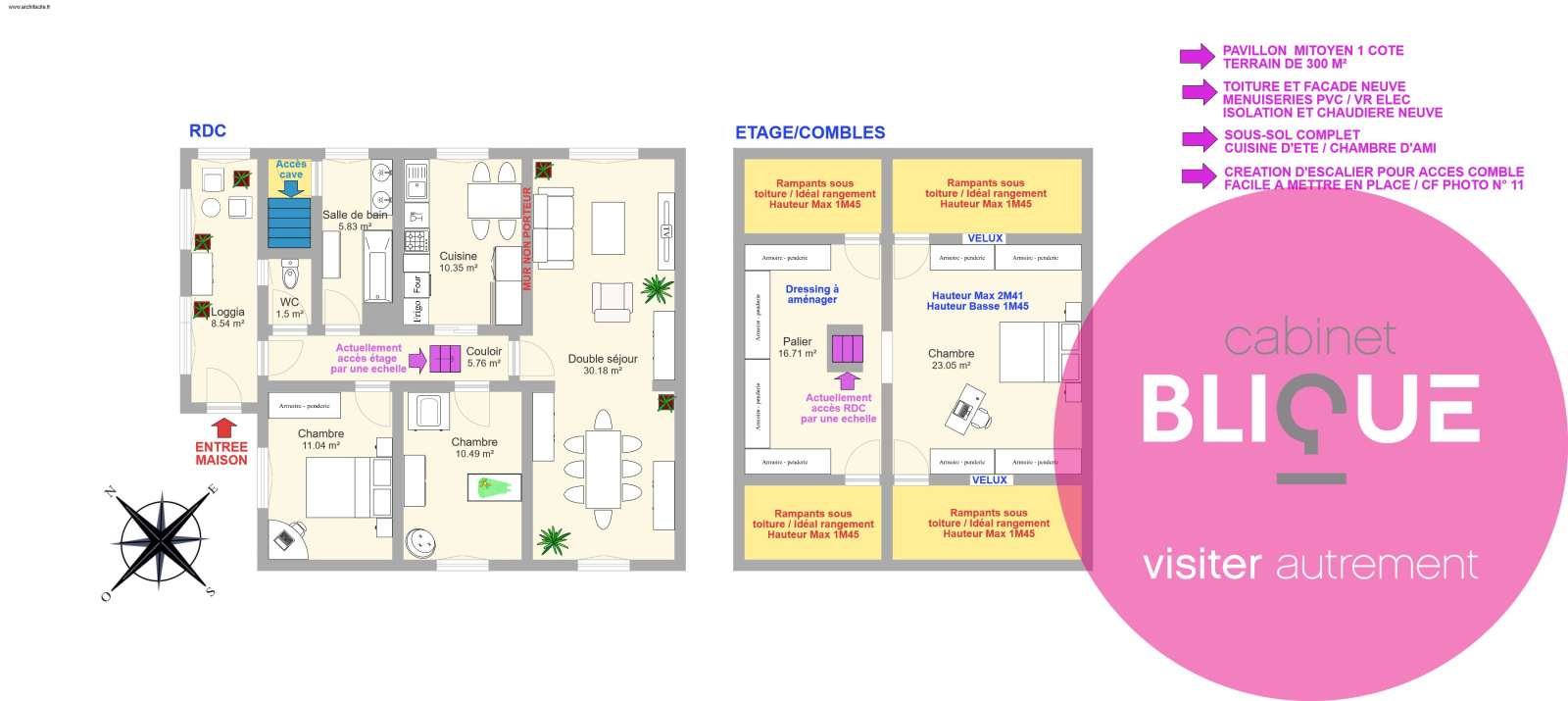 On prend de la hauteur avec cette maison d'environ 125 m² habitables sur sa parcelle de 300 m², mitoyenne d'un côté et datant de 1954.