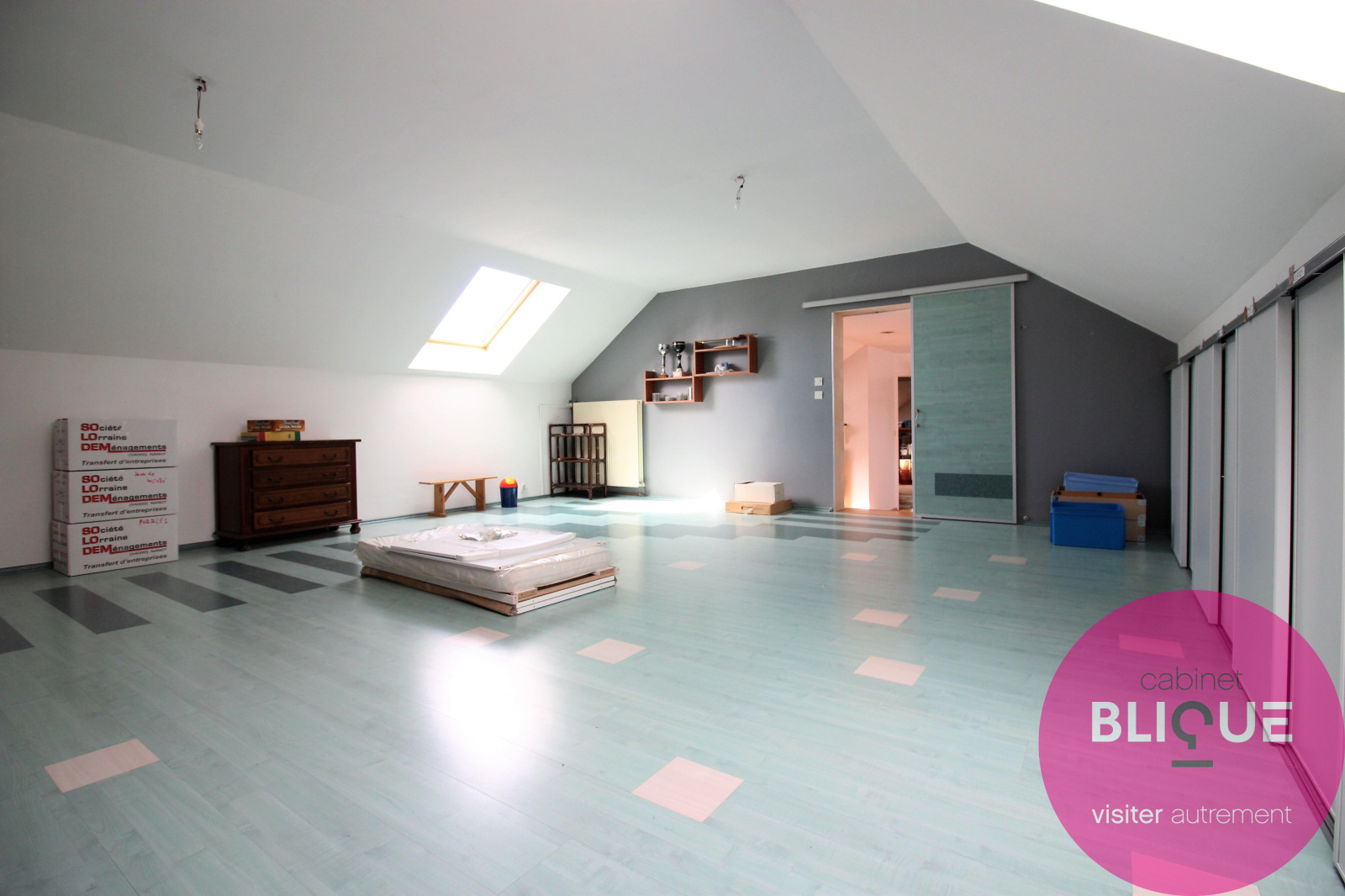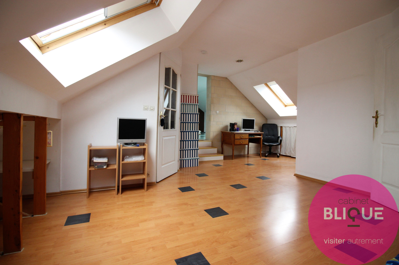 A l’étage, une pièce desservant une salle d’eau avec WC peut être aménagée en chambre ou bureau et elle dessert également une vaste pièce de 39 m² pouvant être une 4e chambre ou un espace salle de jeux. Un grenier de 15 m² peut lui aussi facilement être aménagé.