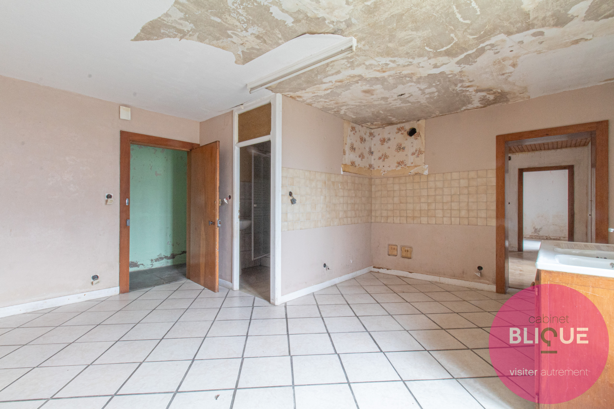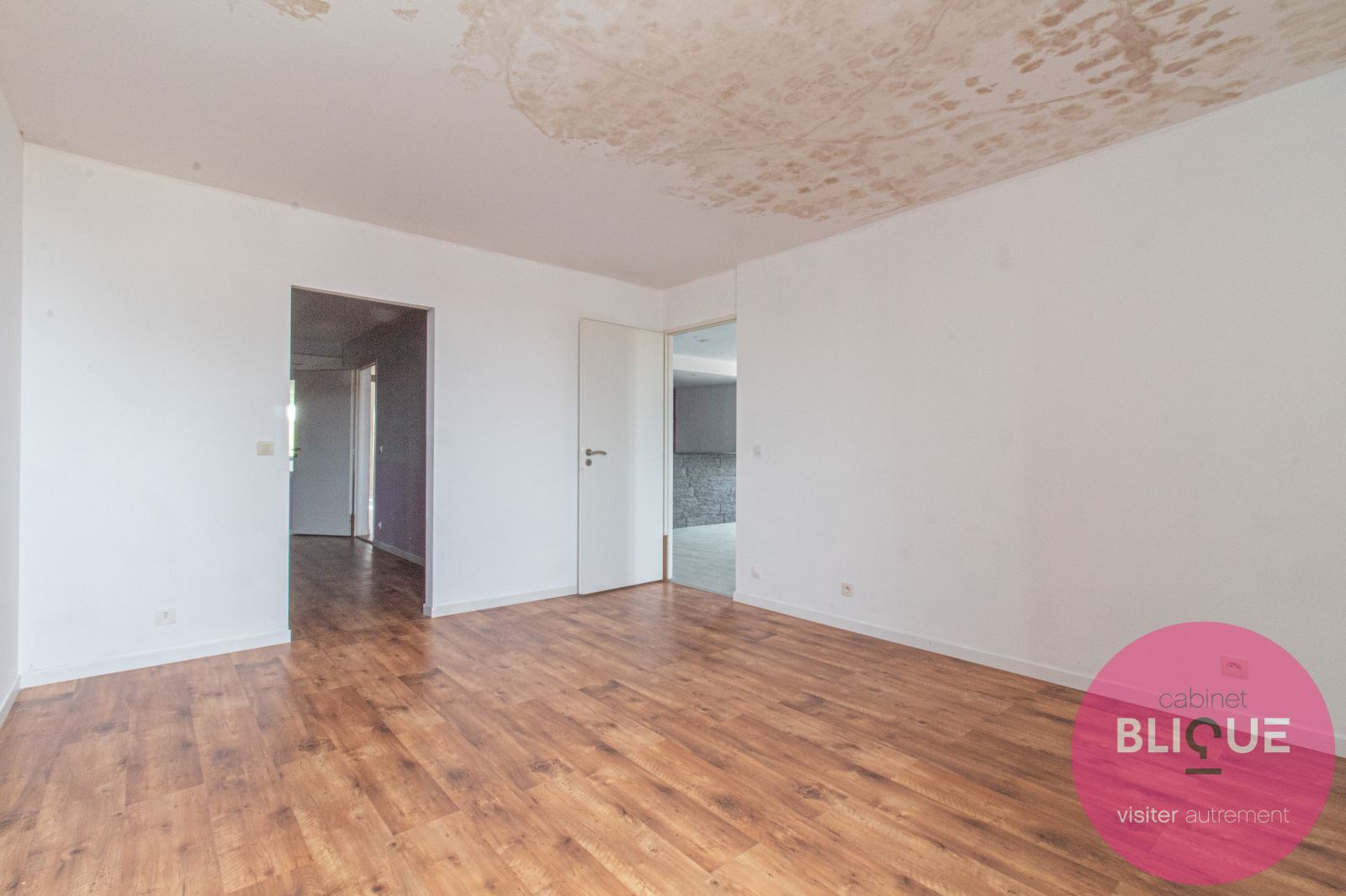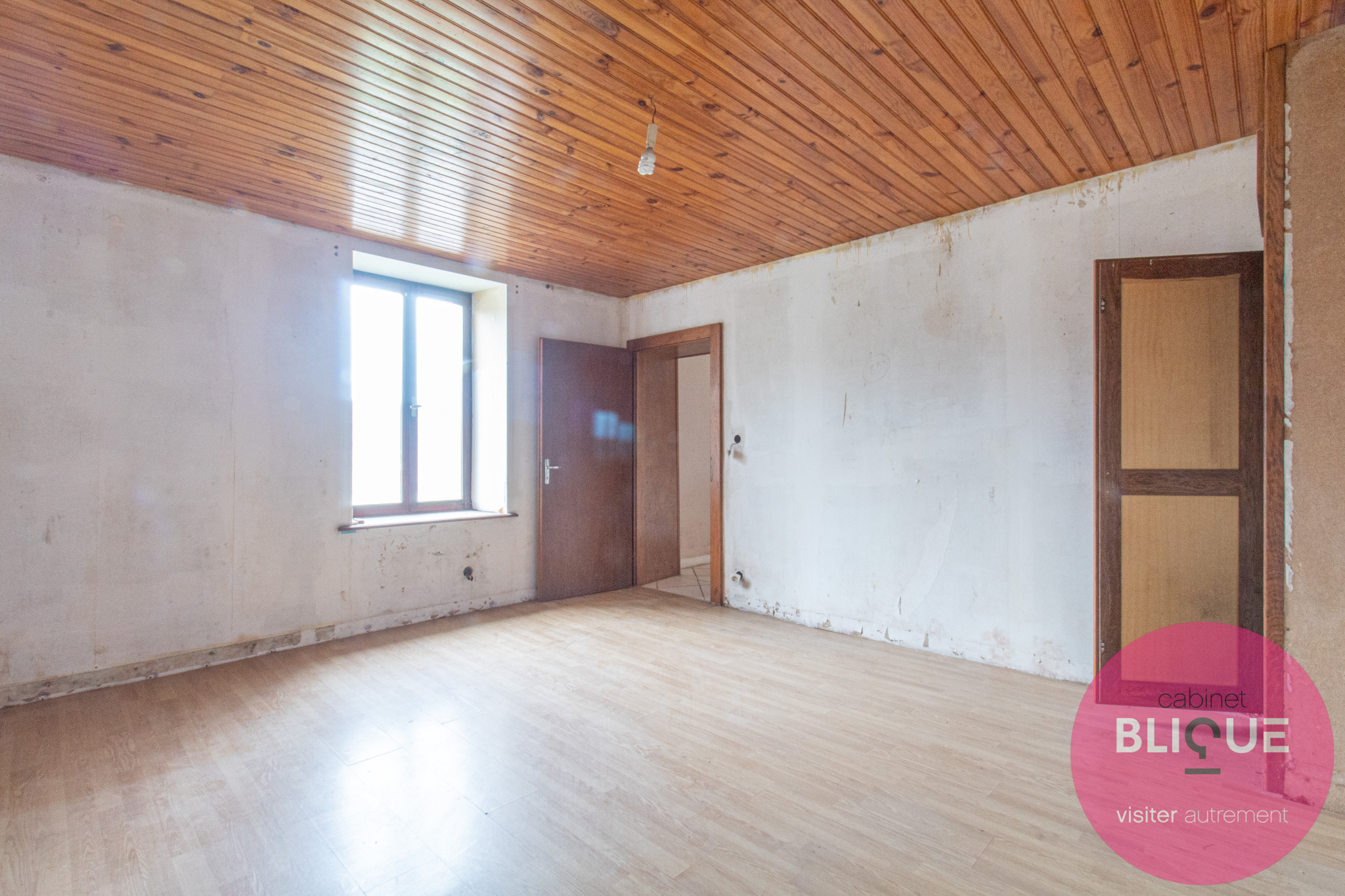 – un premier étage avec un F3 de 98 m², un F2 de 39 m² à créer et des combles de 200 m² à dompter.