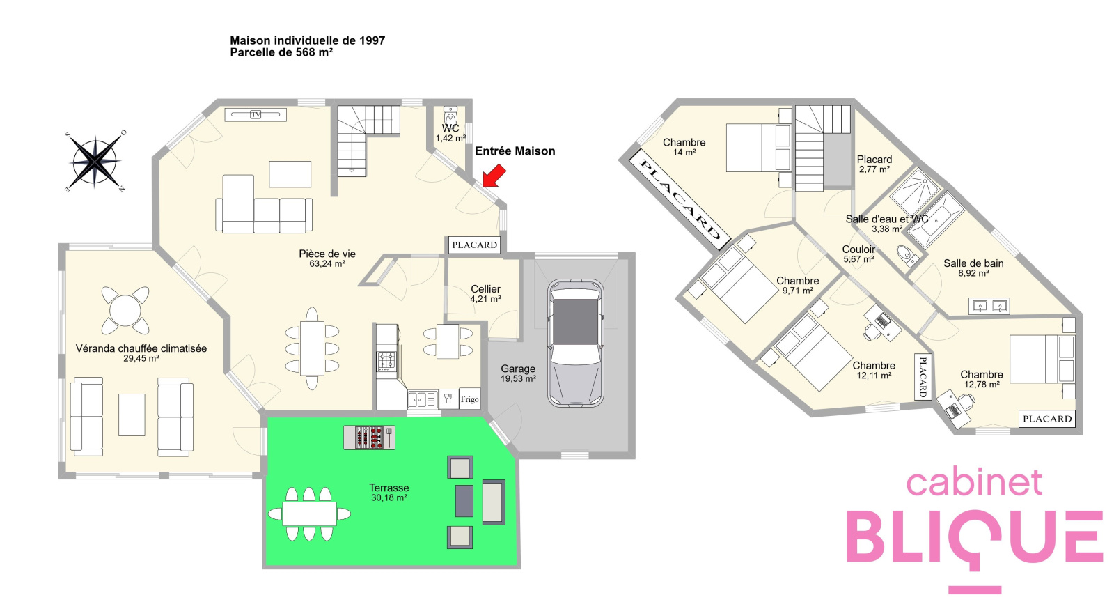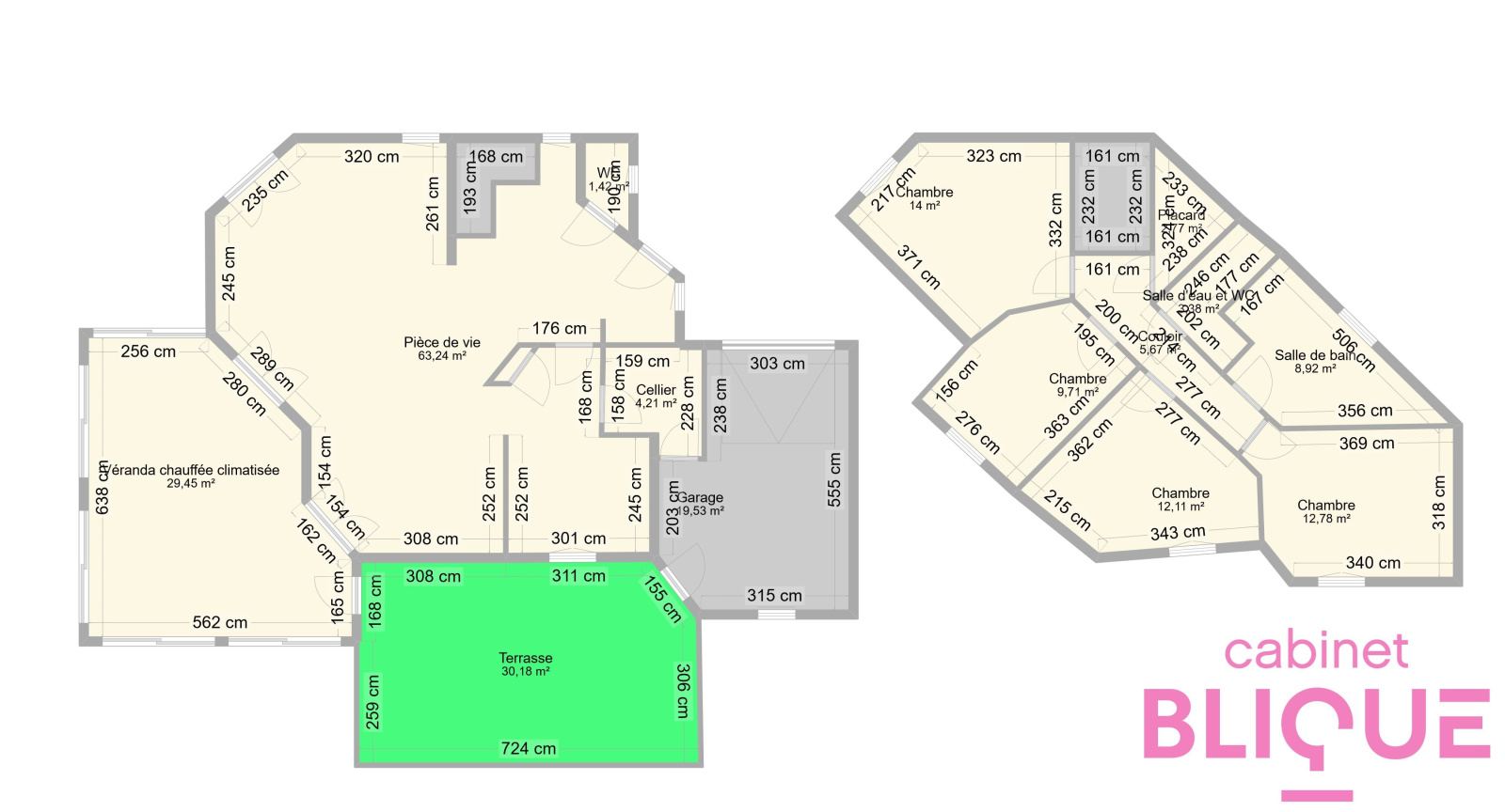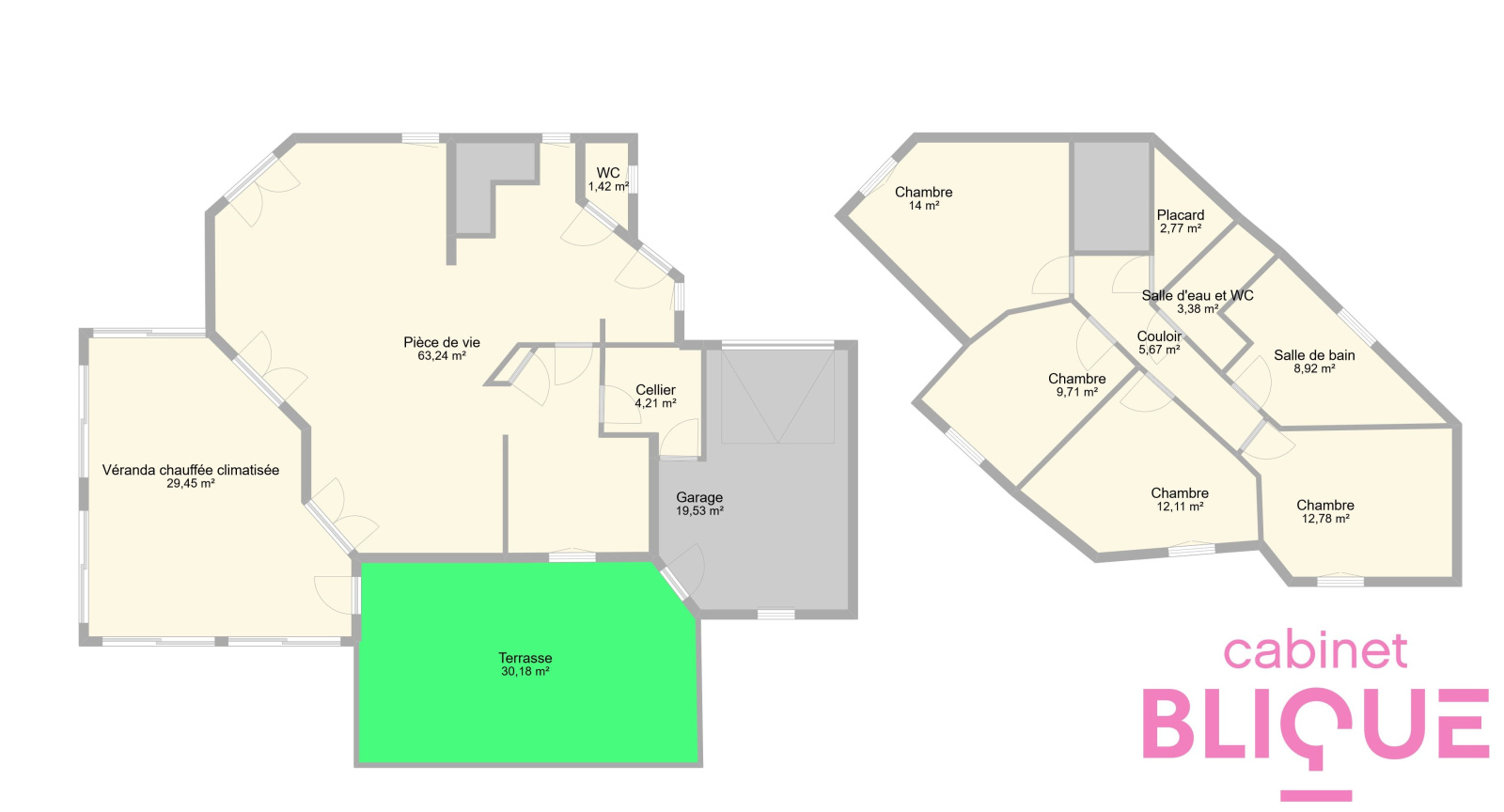 Au rez-de-chaussée elle vous comblera de bonheur avec un espace de vie climatisé de 95 m² comprenant la cuisine équipée, l’espace salle-à-manger, le salon et la véranda avec accès à la terrasse de 30 m² et au jardin.