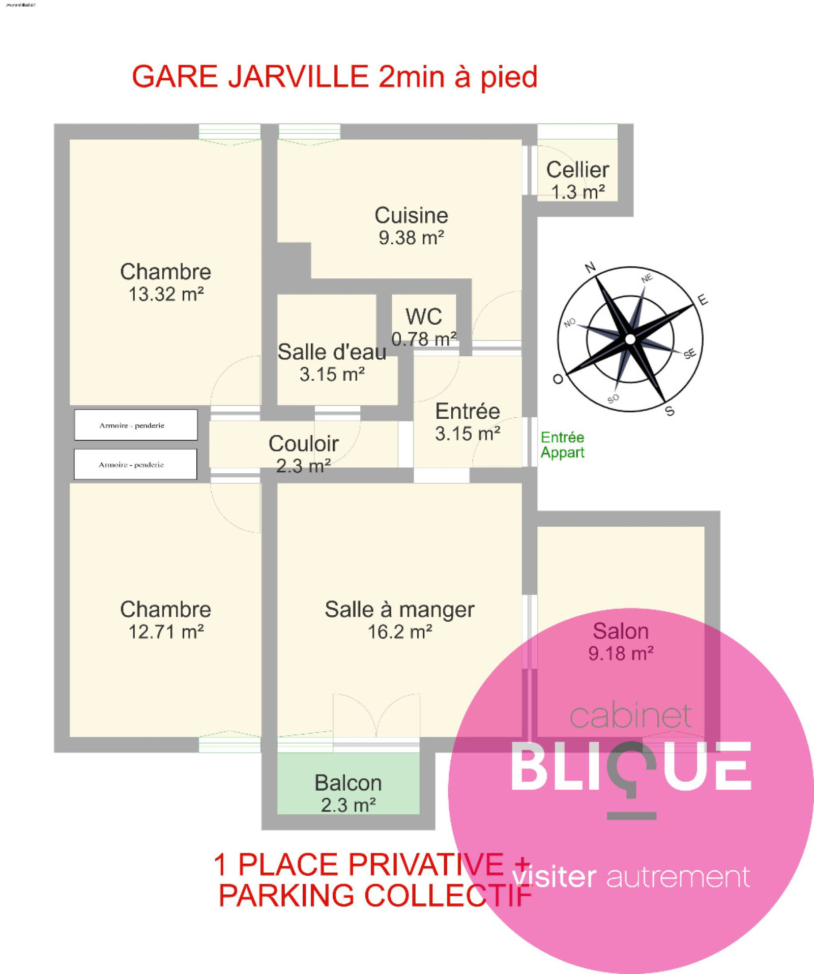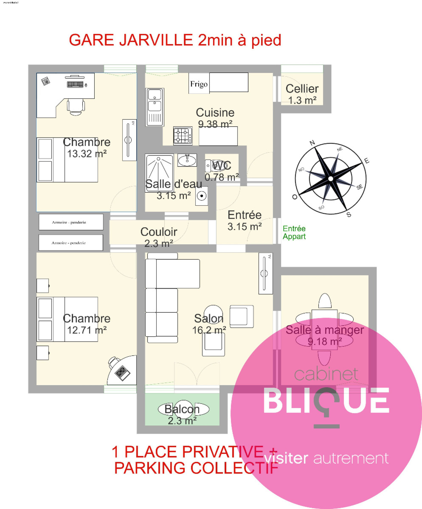 A Jarville la Malgrange, dans la résidence Le Fontenay, venez découvrir cet appartement de 71 m² accessible par la rue de la Gare. Aucune nuisance sonore mais par contre un avantage certain pour se déplacer en train car la gare est à seulement 2 pas. L’appartement propose un salon et une salle à manger de 25 m² environ donnant sur un balcon exposé Sud avec une cuisine séparée de 9 m² et un cellier. Une salle d’eau avec WC séparé et 2 belles chambres de 13 m² chacune avec dressing viennent compléter ce bien.