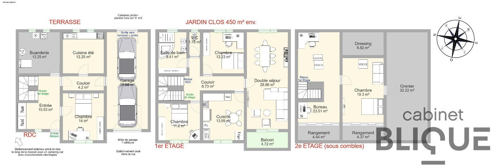 Nous disposons des plans et des côtes et pouvons sur demande et gratuitement réaliser des modélisations afin d’aménager ce bien selon vos envies.