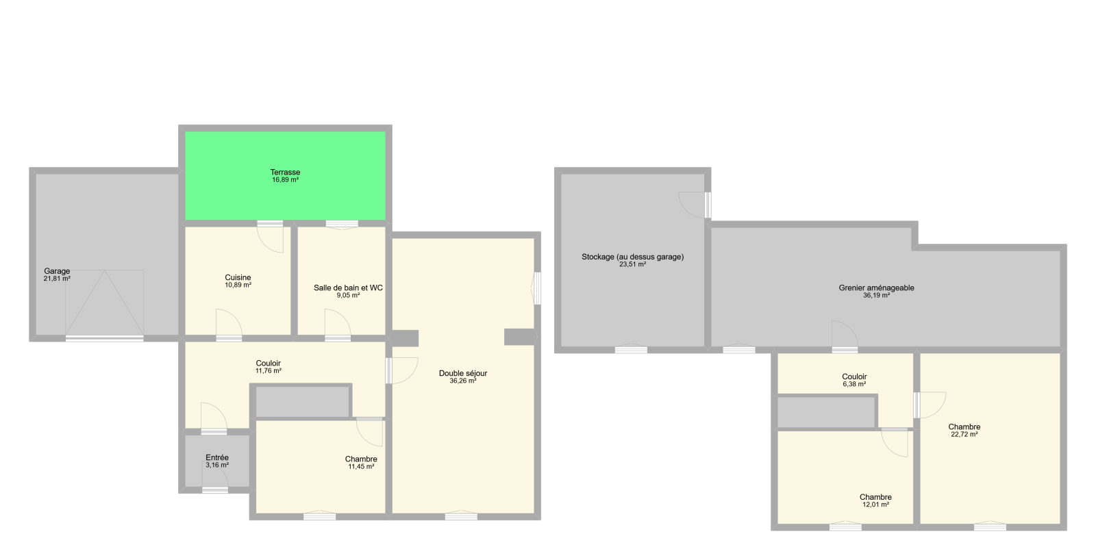 Envie d’un grand salon pour vos apéros entre potes ? Vous avez un double séjour de 36 m². Une cuisine avec accès direct à la terrasse et au jardin ? C’est prévu. Un jardin un peu sauvage ? Il vous attend pour une petite séance de débroussaillage express.