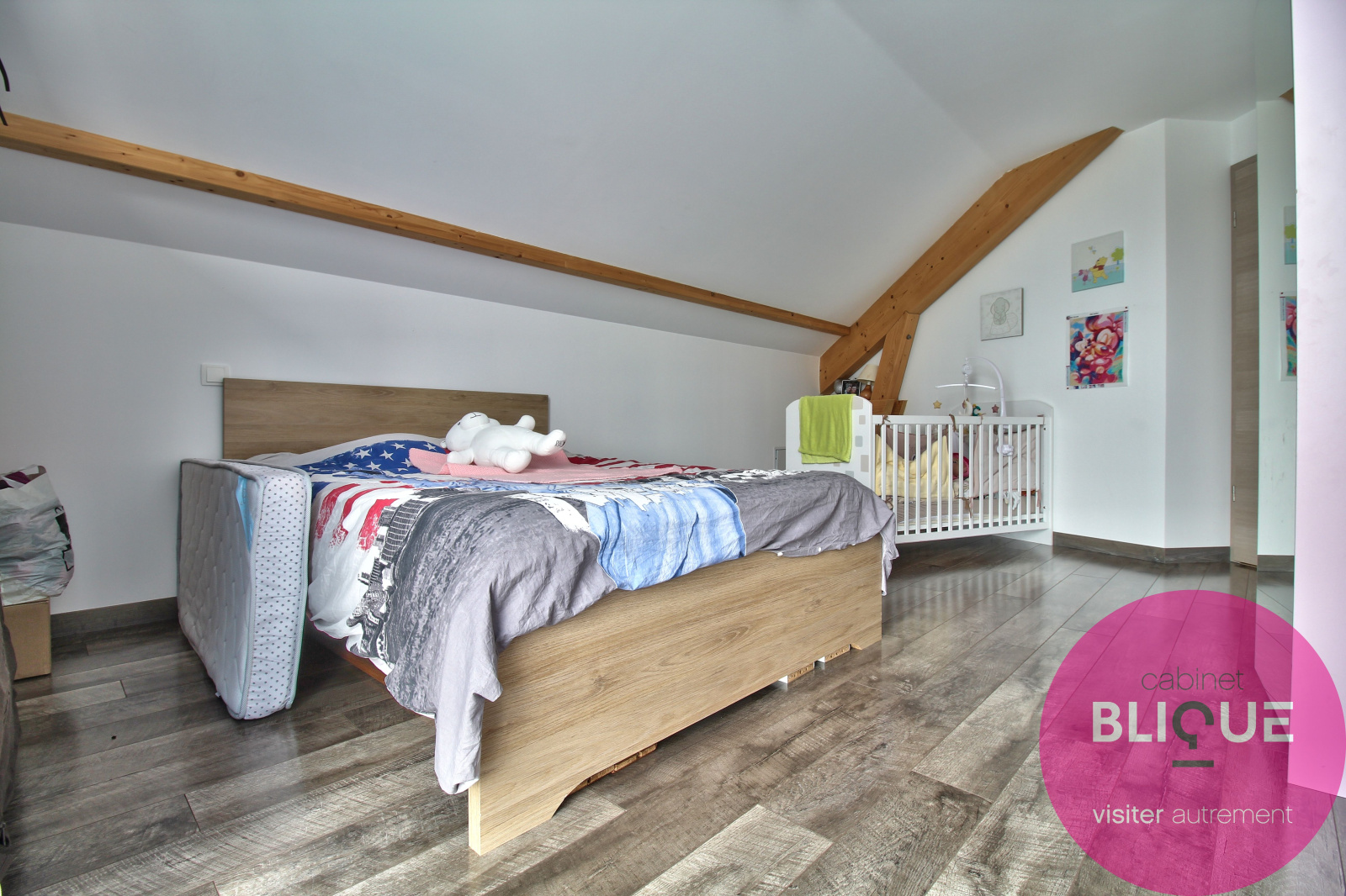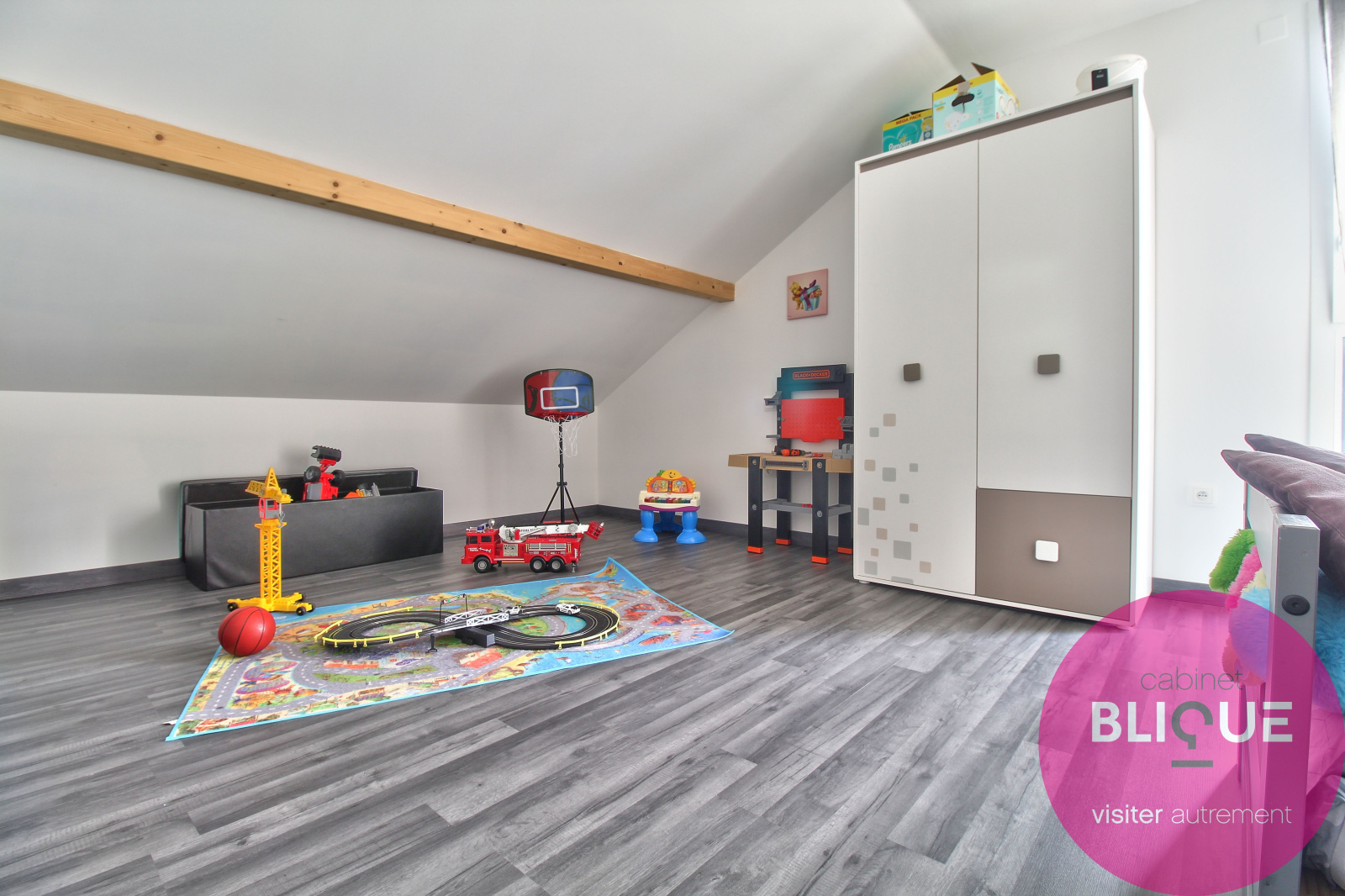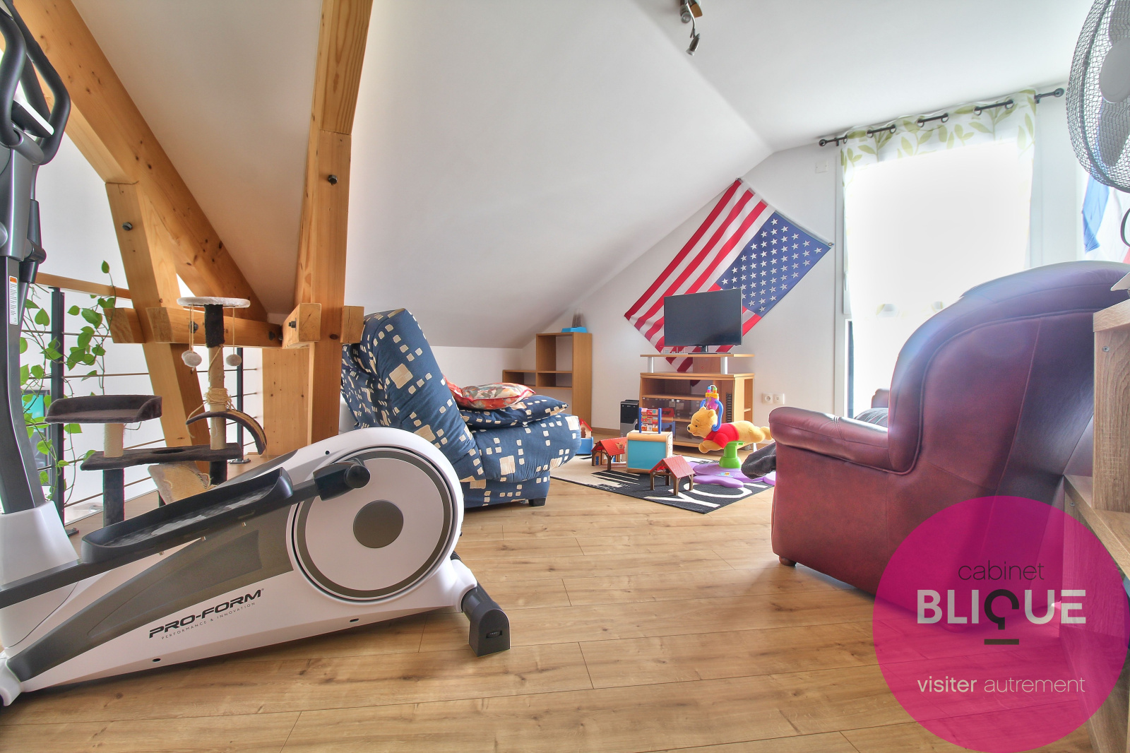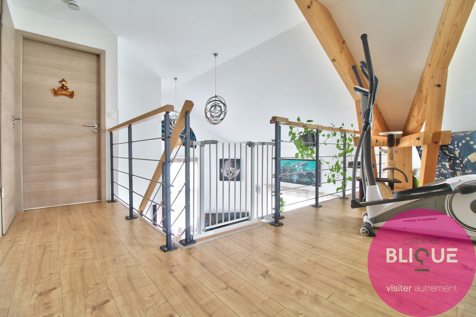 Au premier étage, deux chambres de 15 et 20 m², une salle de bain de 6.7 m², un WC et une mezzanine de 22.5 m² pouvant facilement être transformée en quatrième chambre.