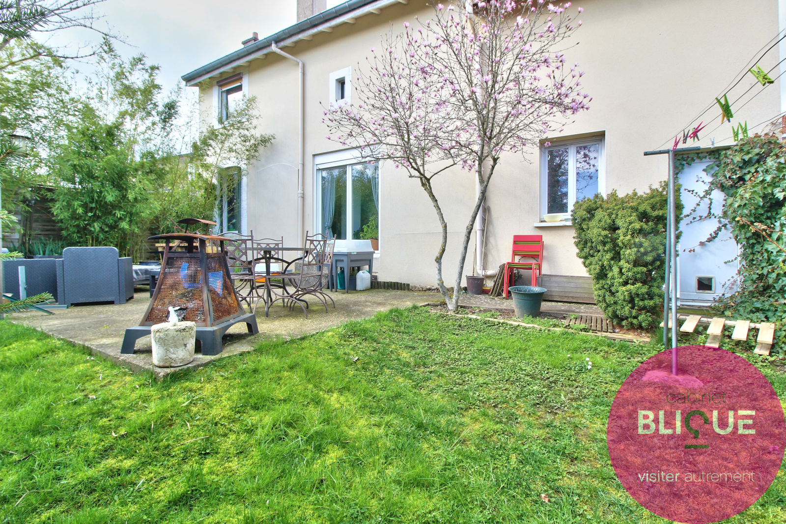 La parcelle sur laquelle la maison est construite mesure 380 m², un jardin au sud et un autre au nord pour profiter des terrasses en fonction du temps et de la chaleur (#canicule).