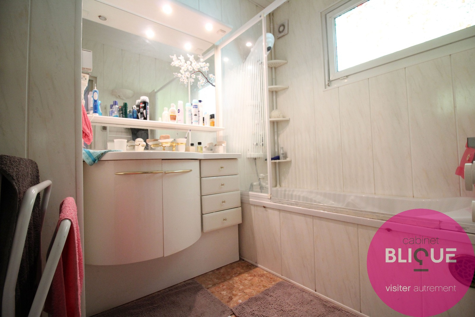 La cuisine de 12 m² est attenante au salon/séjour. Le rez-de-chaussée dispose d’une salle de bain et WC séparés.