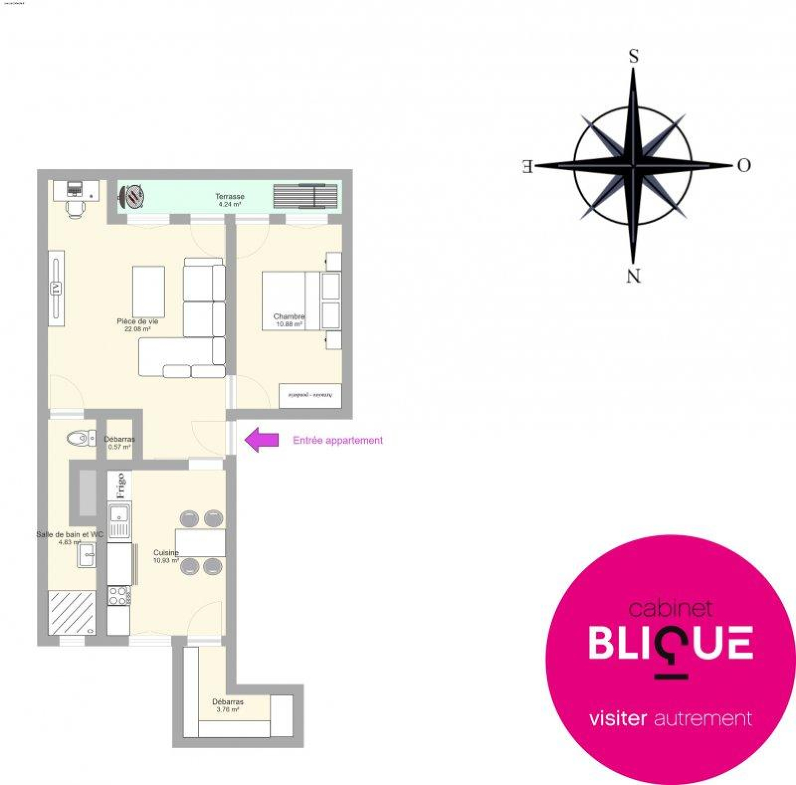 Ici l’espace est optimisé : la pièce de vie de 23 m² et la chambre de 11 m² donnent sur votre terrasse.