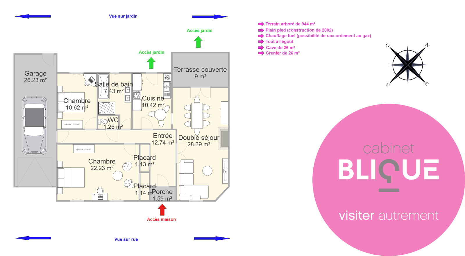 Avec un jardin arboré de 950 m² et un garage de 26 m², vous bénéficierez d’un cadre naturel pour vous ressourcer.