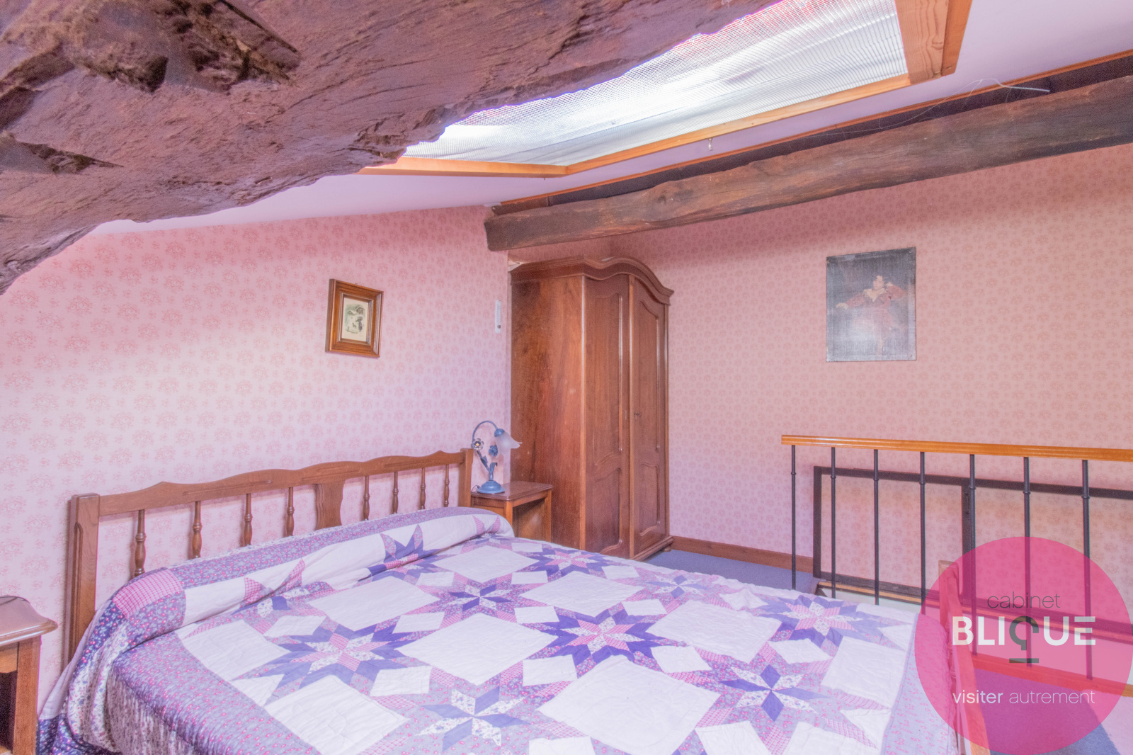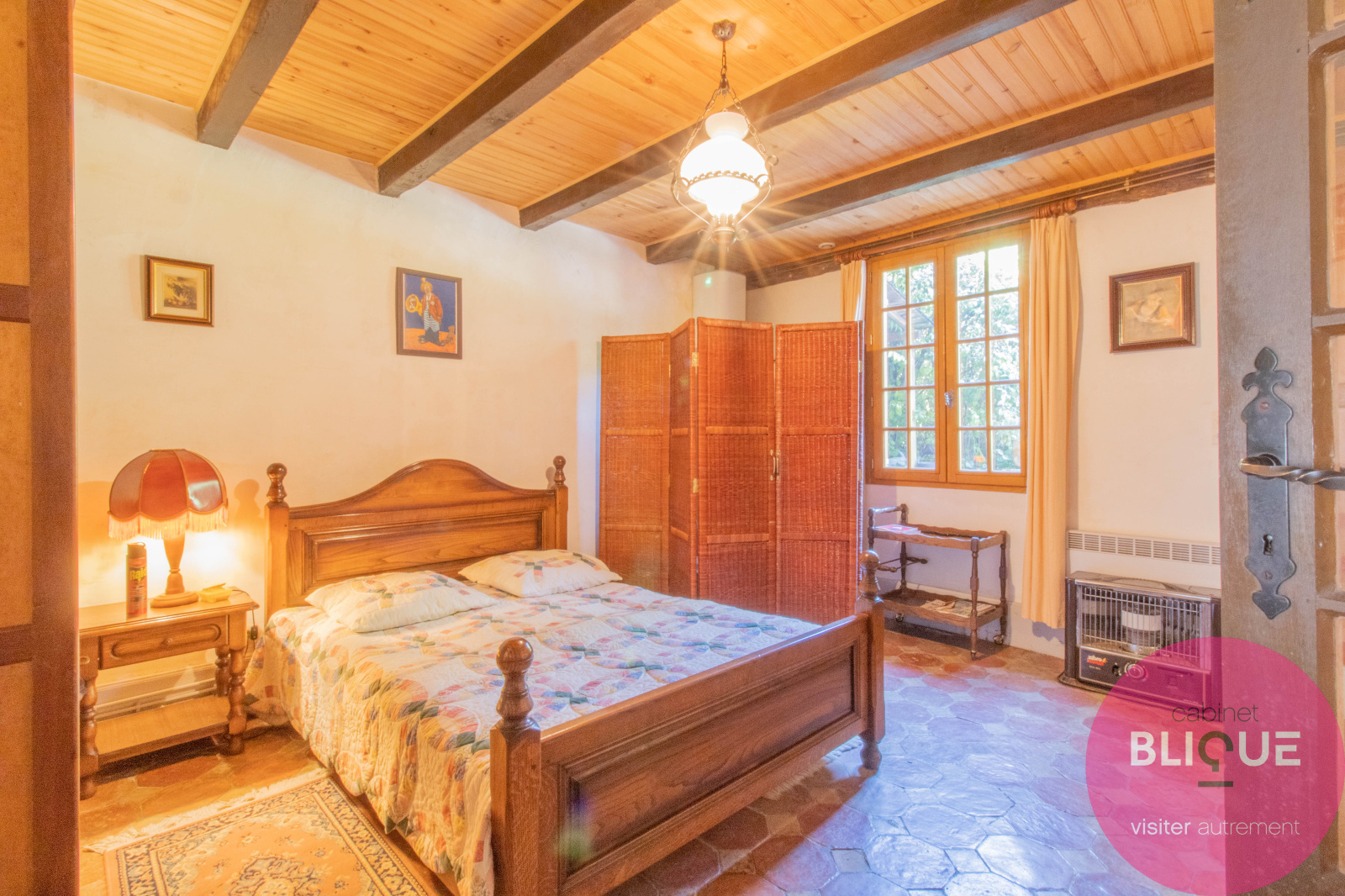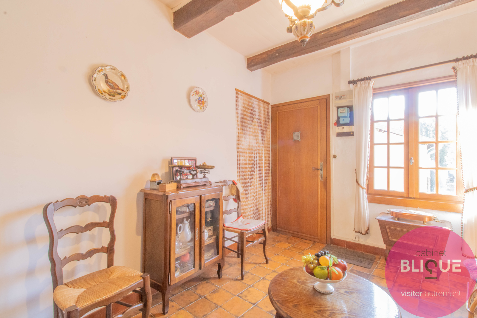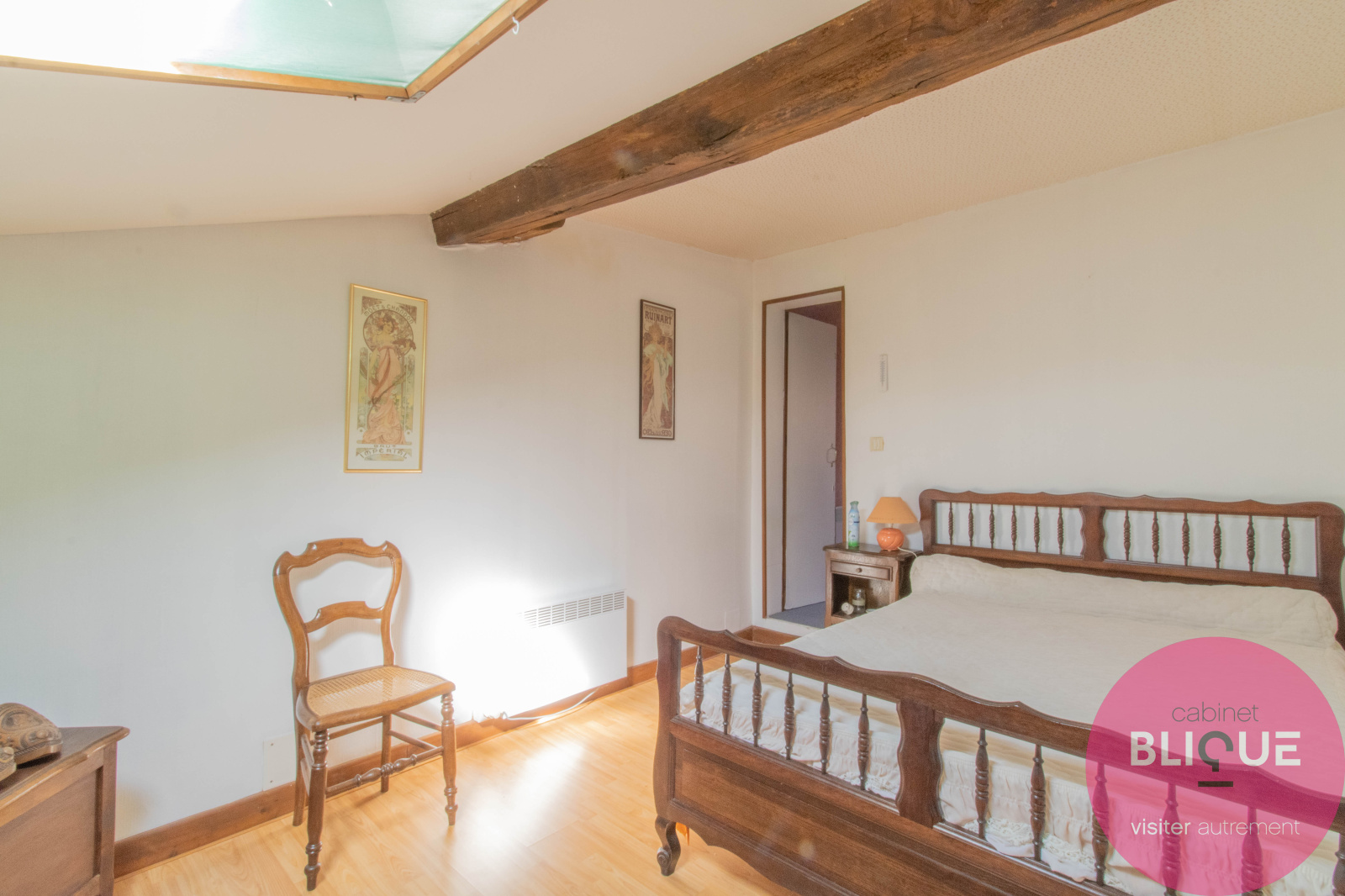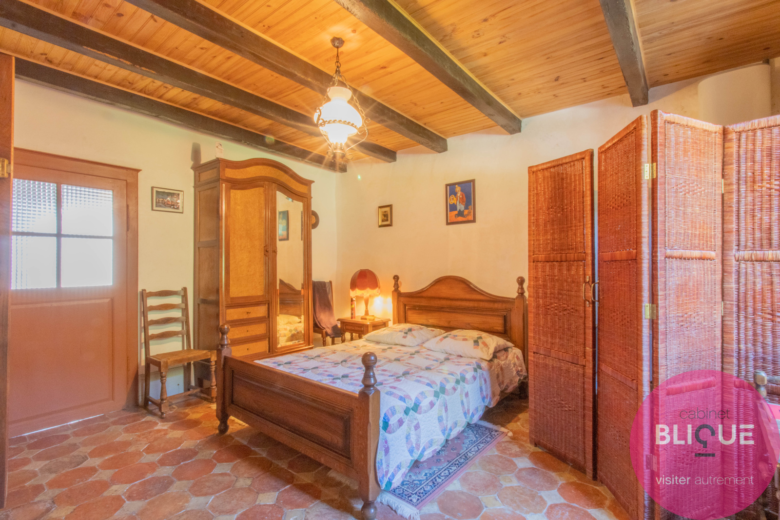 A l'intérieur, il dispose, au rez-de-chaussée, d'un salon de 12 m², d'une cuisine de 19 m² avec accès direct à la terrasse, et une chambre de 18 m². Une salle à manger avec cheminée en pierre est à rénover.