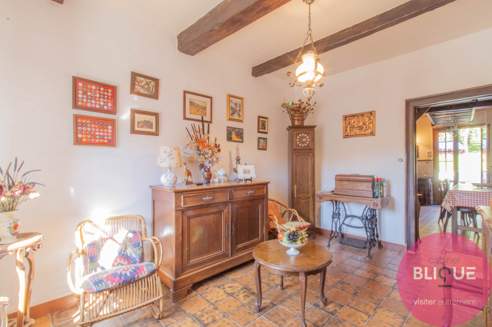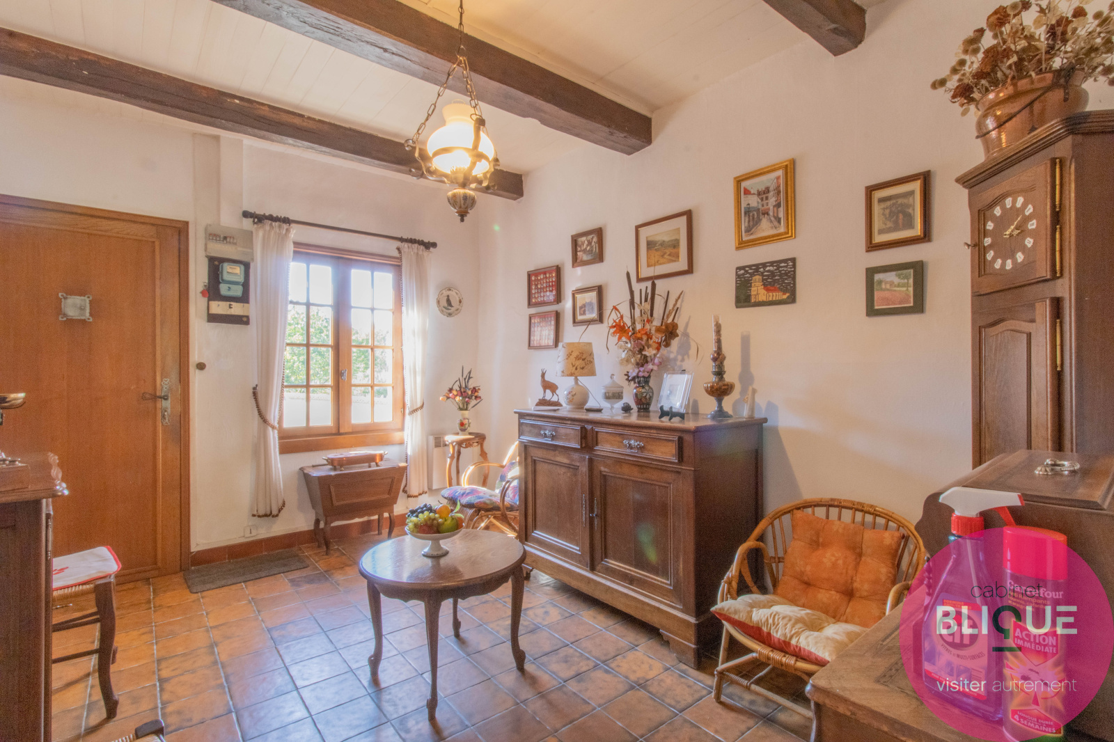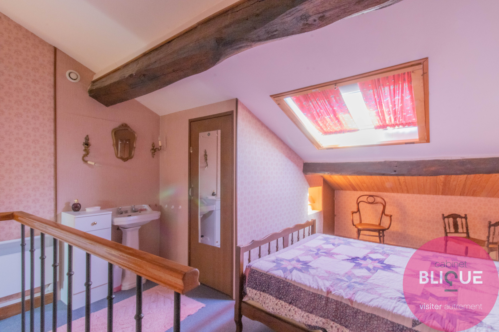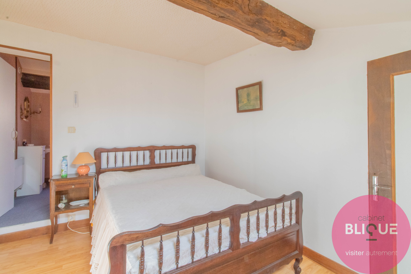 A l'intérieur, il dispose, au rez-de-chaussée, d'un salon de 12 m², d'une cuisine de 19 m² avec accès direct à la terrasse, et une chambre de 18 m². Une salle à manger avec cheminée en pierre est à rénover.