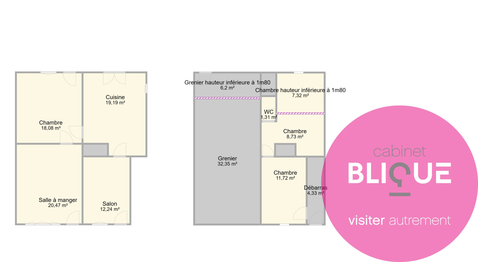 Au premier étage, il y trouve deux chambres de 12 et 16 m², ainsi qu'un grenier aménageable de 32 m², suffisamment de place pour céer la future salle de bain pour Pluto !