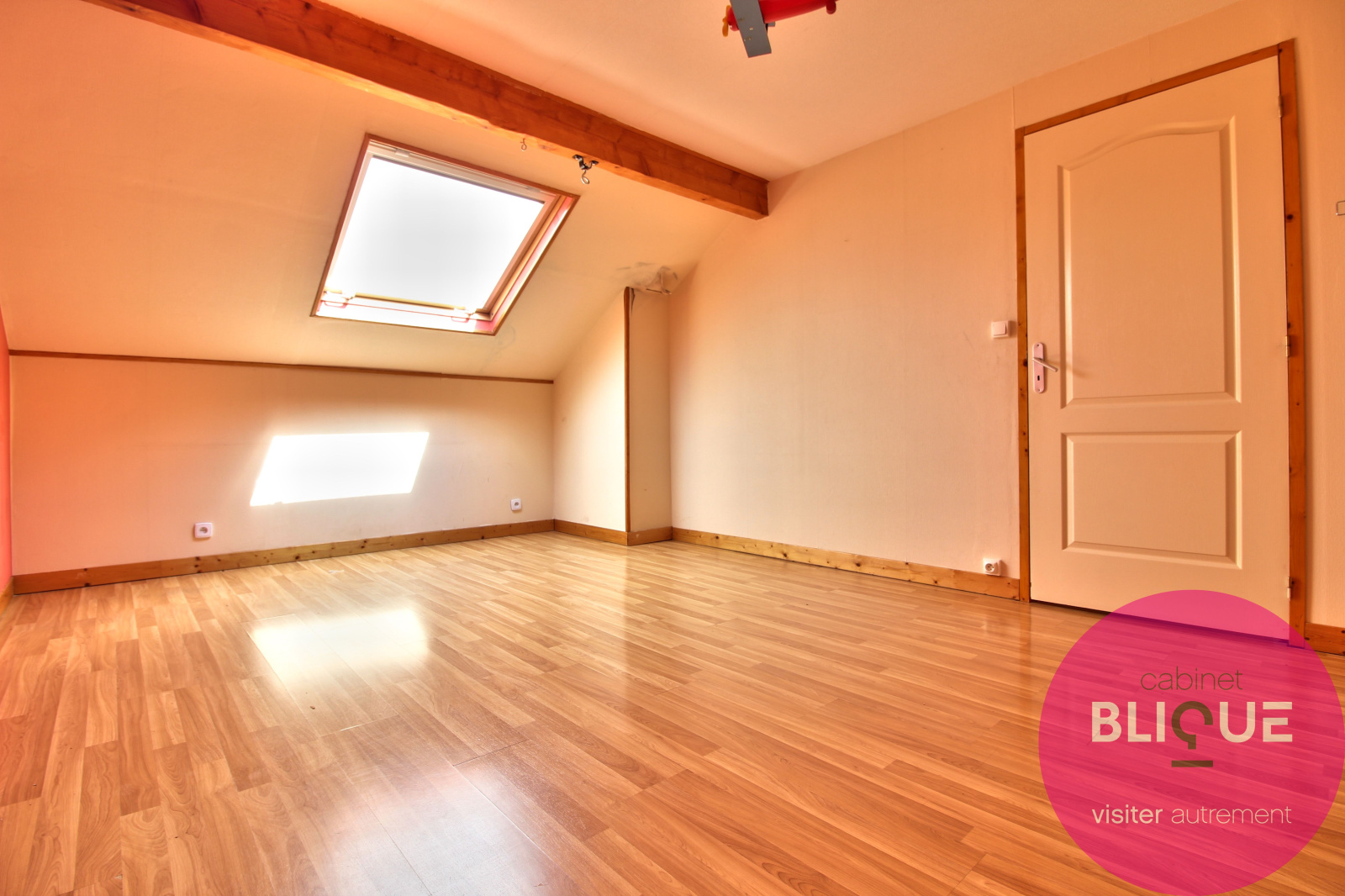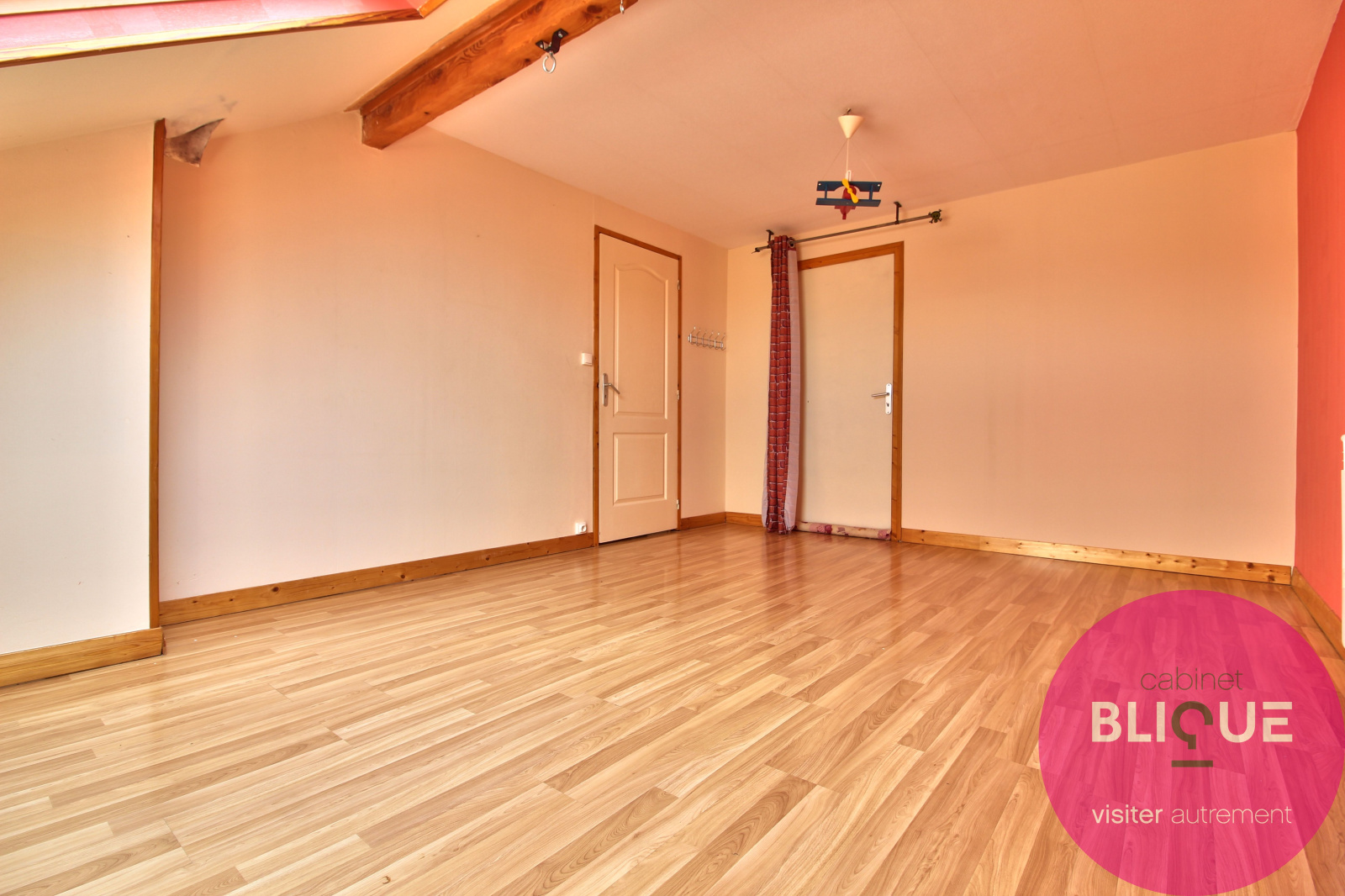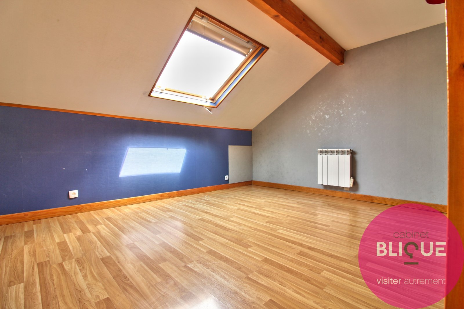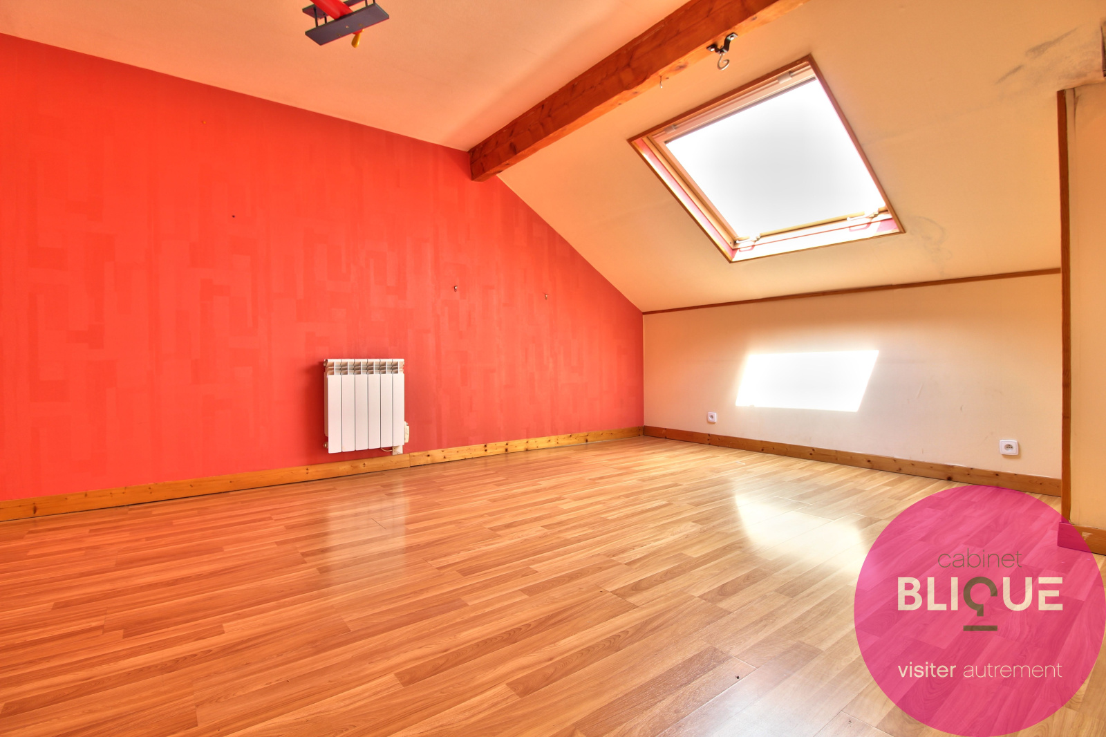 A l’étage ce sont deux chambres de 16 m² et 17 m² au sol, une salle d’eau de 6 m² et un grenier facilement aménageable en dressing.