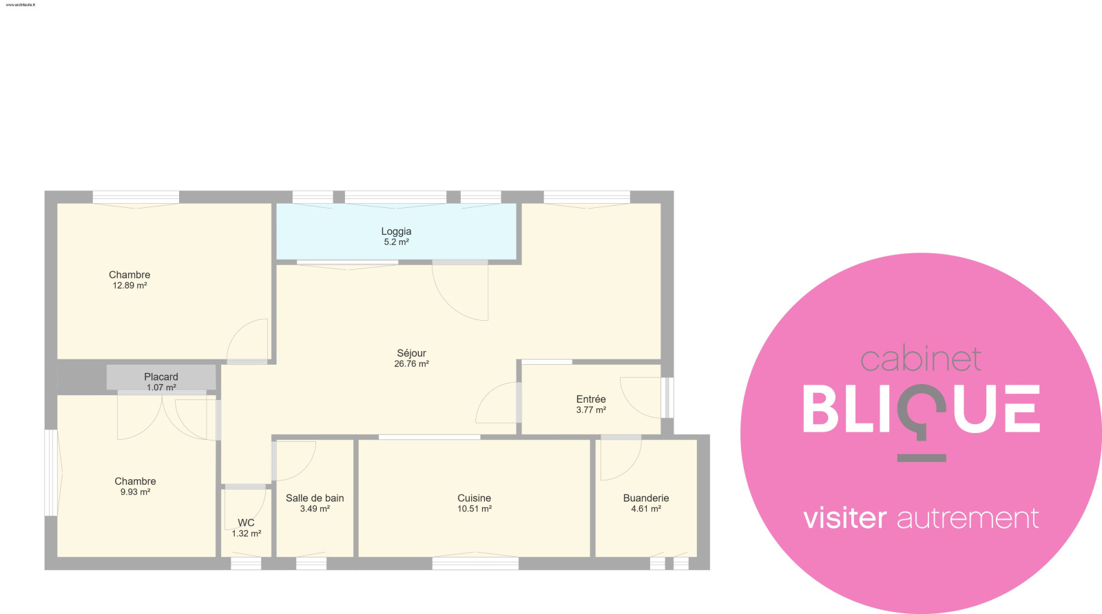 Ce qui le compose ? Une entrée, un séjour de 27 m², une cuisine de 10.5 m², une loggia, une buanderie, une salle de bain, un WC séparé et deux chambres de 10 et 12.5 m². EMBALLER C’EST PESER !